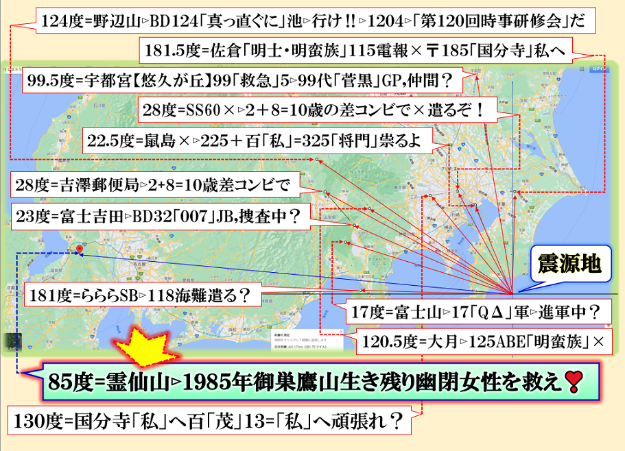 0921⊳「安倍李晋三」誕生日の地震です!何か重大なお知らせかな?分析の結果確かに「国民」に公平に重大な秘密を公開して来たのです、何故「私」は「大月駅」ログインで「野辺山駅」へ呼ばれるのかの答えを明確に公開して来ました、其れを示す「暗号化」は333東京タワーの数値と共に1,345.6mの「野辺山駅」の標高数値を出して来た事から総てが解るその過程を含めて「国民」に広く公開して下さい、・・・同時に「私」が今呼ばれて居る事も解ります。「神頼み」?その様な事が此処で実現するのか?其れをそのまま信じて良いのか?の問題は個人差があります、「信じる者は救われる」かもしれませんが、個人の自由です、金を掛けて行くのか?切り捨てるのか?皆様は如何理解致しますか?と言う訳です。