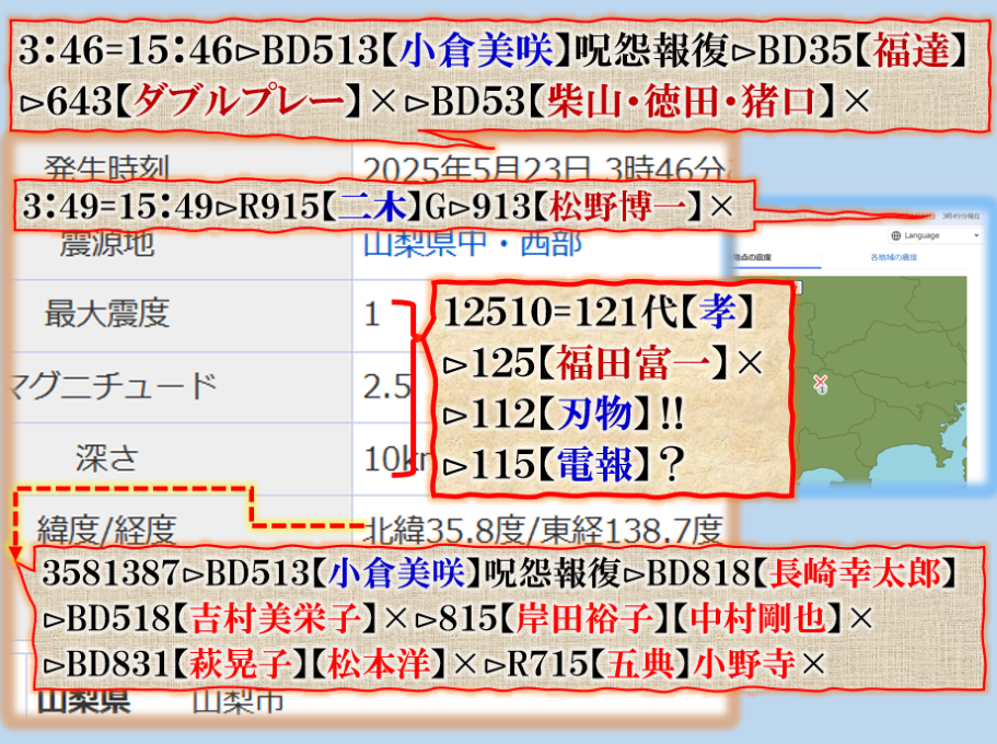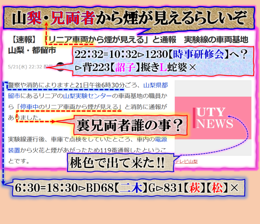 グランドゼロを示したのは【盛岡】⊳モリオカ≒盛顔とすれば、関わる人達の【顔触れ】を見なさいと言う意味に成る、その意味でこの報道で出て来た、皆様の関係を調べて見るとこの様に成る訳です、同時に千葉県船橋市夏見台では【他テコ盛り】事件が起きて居た、テコを盛ったのは「リ」だとすれば【梨】の事では無いか❓【山梨県】の闇を示唆して居無いか❓⊳その山梨県で間髪を入れずして今朝未明に甲府市で【狼煙】が揚がりました、この後直ぐに分析を始めます、物語はつながって居る事が解るのです。 sy