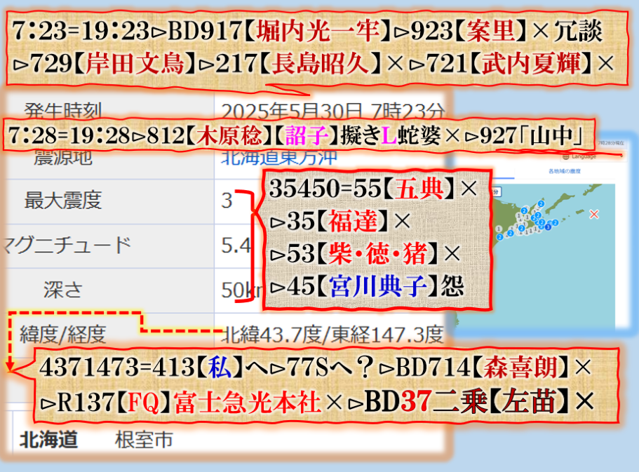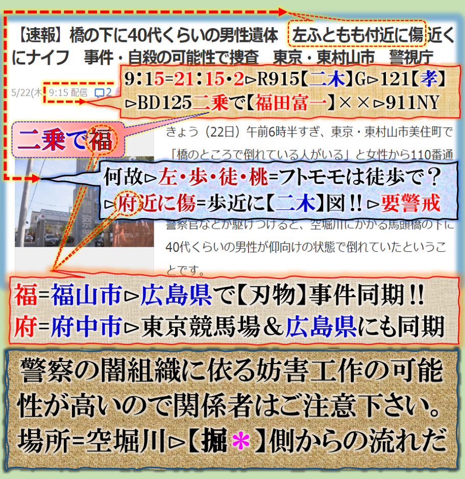 八丁堀が出て来ていた、此処ではBD917「堀内光一牢」×モロ出しです、当然その妻「詔子」も同罪だろう、その数値何処の誰がカウントしたのか❓真実はどうでもいい、この数値を出したいから出した、真犯人は是だと言う事だろう、是から如何する積りかな、~~~♬ sy
