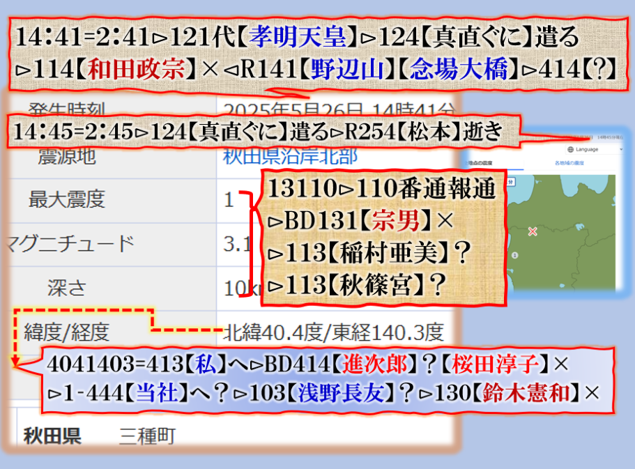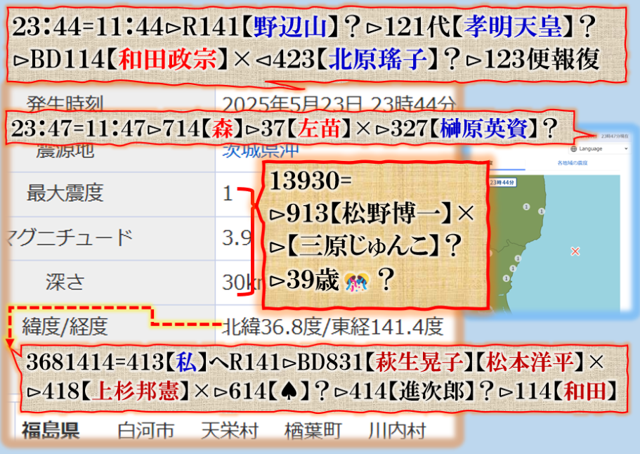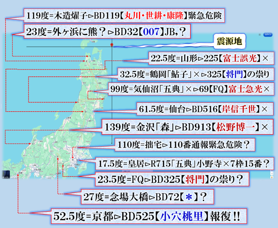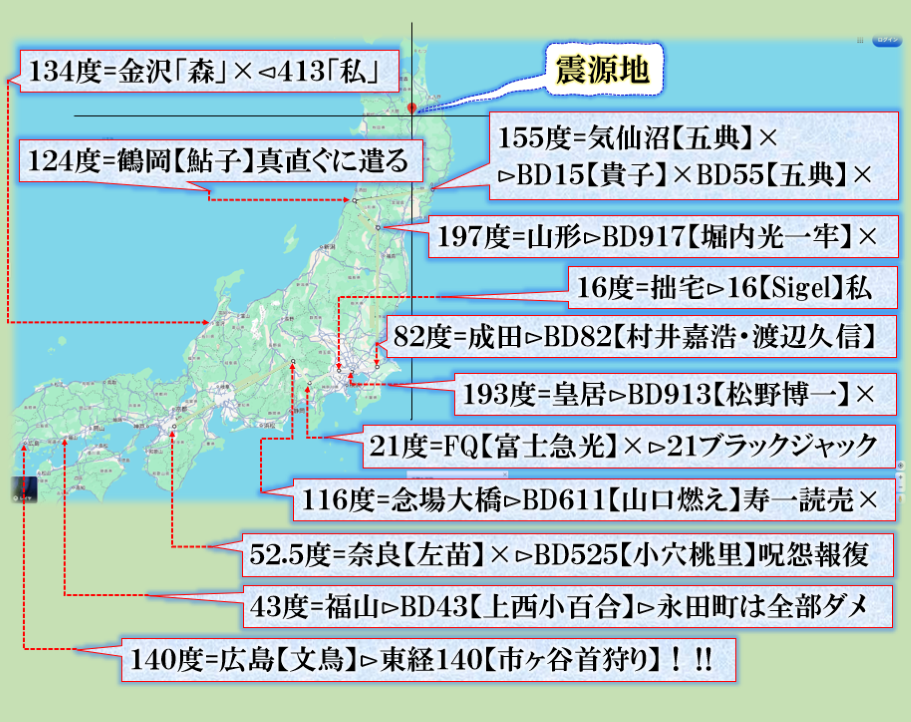 何故「盛岡」が同緯度なのか❓≒グランドゼロとも言うのだが。其れこそ何かが起きる【サイン】であると考えて居ます、恐らく確実に何かが起きる筈です、【狼少年】に成っちゃうかもしれないが、~~~♬大丈夫【78歳】爺さんだから、この構図は確実にそれだから、地震は意味無く起きません、「訳」理由があって起こす「其処へ撃ち込む」訳です、楽しみが増えた様な気が致しますよね、何が起きても【私】は其れを確実に論理的に説明が出来る訳だから。考え方を変えれば「天界」は【私】に活動の場を与えてくれている、何の為に???⊳個人的見解だが【ボケ=認知症】防止の為のカンフル注射見たいな事では無いでしょうか❓【私】が動きを止めたら【日本国】如何なる事か、???今其れなりに安泰で居られるのは【私】が動くからです、大袈裟かも知れないが、それ位の意識をもって生きて居ます。【使命感】とでも言う事かも知れない。 sy