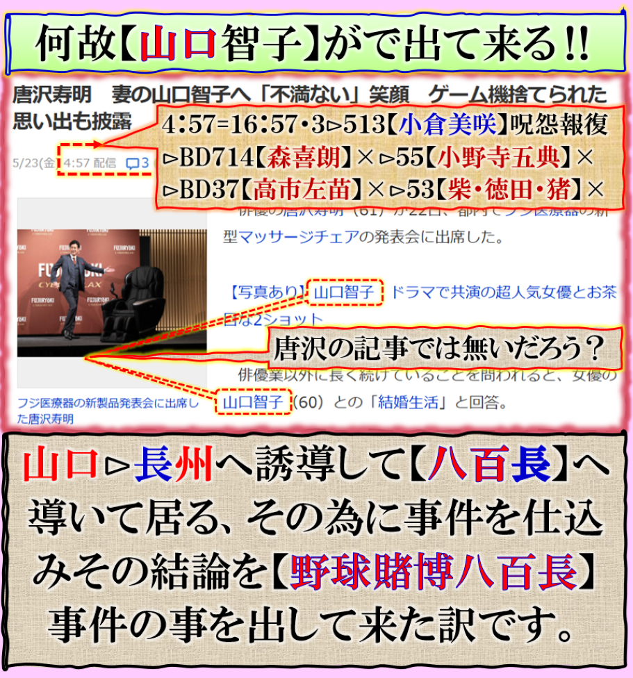 問題はこの事件を何処まで本気で遣るのか❓大規模ですから本気で遣ったら広範囲でその影響が出て来る事は間違いない、どの様な手口で何処まで遣るのか、其れが問題です、野球選手の中で【不自然】に表舞台から消えて行く人も是から多数出て来る事に成る筈です。野球がリーグ戦として成り立たなく成る可能性さえある、野球に【深く】関わる政治家の責任は重大で、そのエリアがどうなるのか、其れが問題なのです。 sy