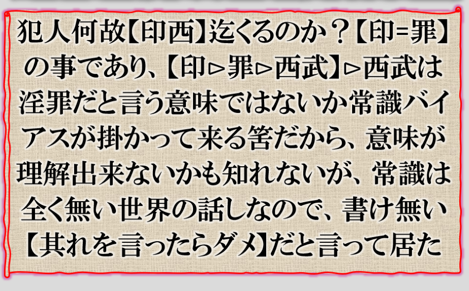 淫罪は西武と「ルイ」姉さんの関係に或ると言う訳なのかも知れません、何方が「罪」に問われるのか❓難しい問題です、常識の範囲を超えている【案件】なのです、通じない話だろうな❓是は【例題】として示す物であり、是以上の詳細は書けません。 sy
