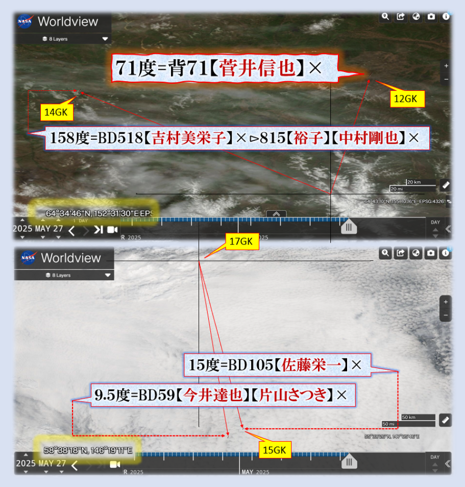 72度が2か所で出て来て考えました≒27歳【白井秀征】の事らしい、何故米国から戻って来たのか❓何故「野球帽」を被って来たのか❓被害者「あさひ」さんの兄も同じ「野球帽」を被って出て来るのか❓偶然では無いだろう、其の問題は後でやります。 72度=27歳であるならば【岩船】の反応は同期して居る事に成ります、何処かでつながって居る様子ですよね❓ sy