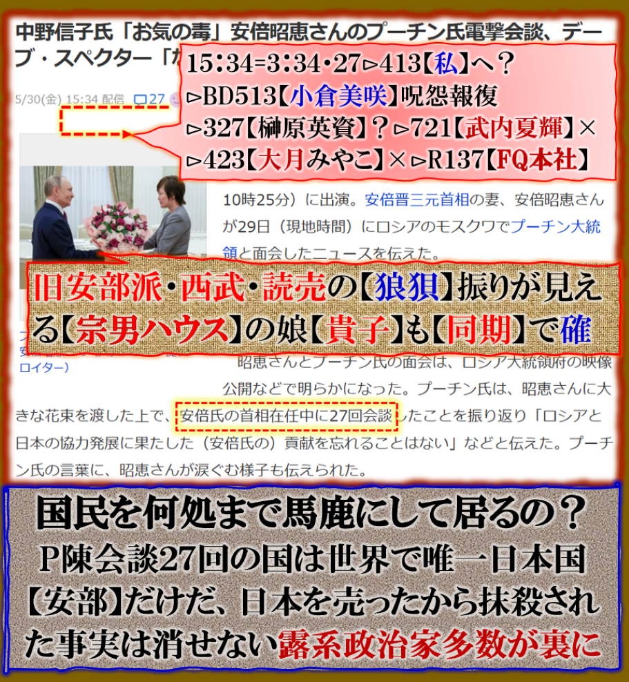 やっぱり「安部マリオ」は日本を売ったのかも知れない、【昭惠】は「露」が最期の砦だと考えている。日本人の感覚とは全く異次元の思想であると思えるのだが、~~~♬ sy
