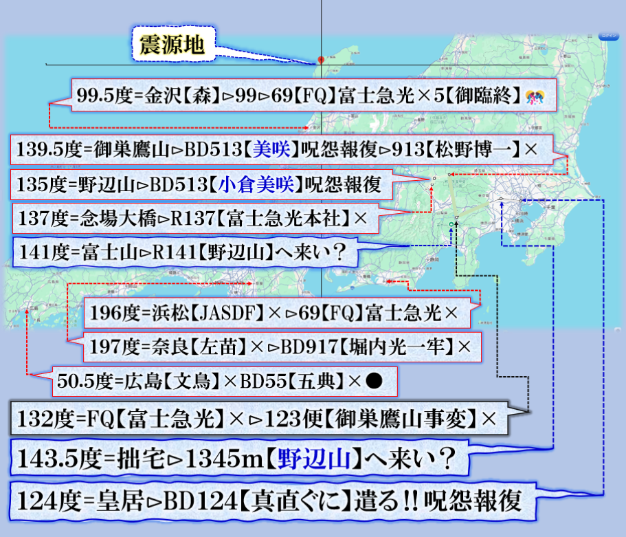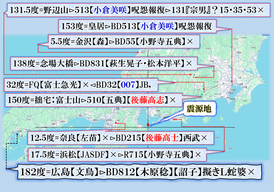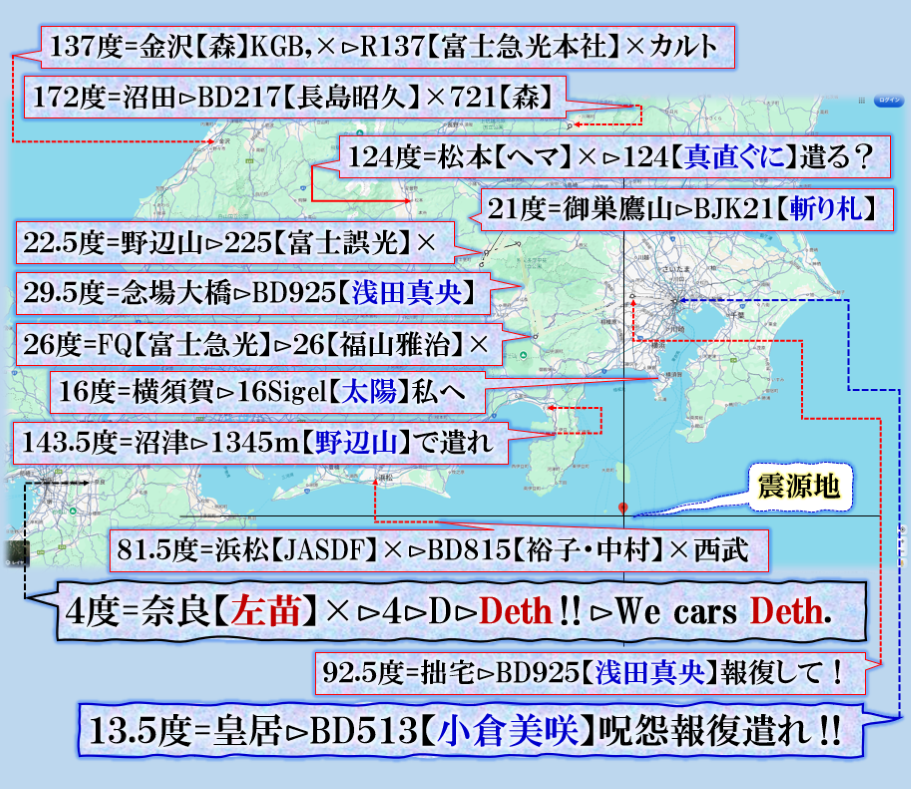【小倉美咲】さんの数値が二乗で出ている事、【浅田真央】のベクトルが【念場大橋】と【皇居】に出ている、更に【木型】で出ている意味は、相当なものです、霊現象として何かが起きる事を示唆している事が解ります、何が起きるのかは解りませんが、【ハンコ】???止められる事では無い【関係者】は覚悟しなよ。 sy