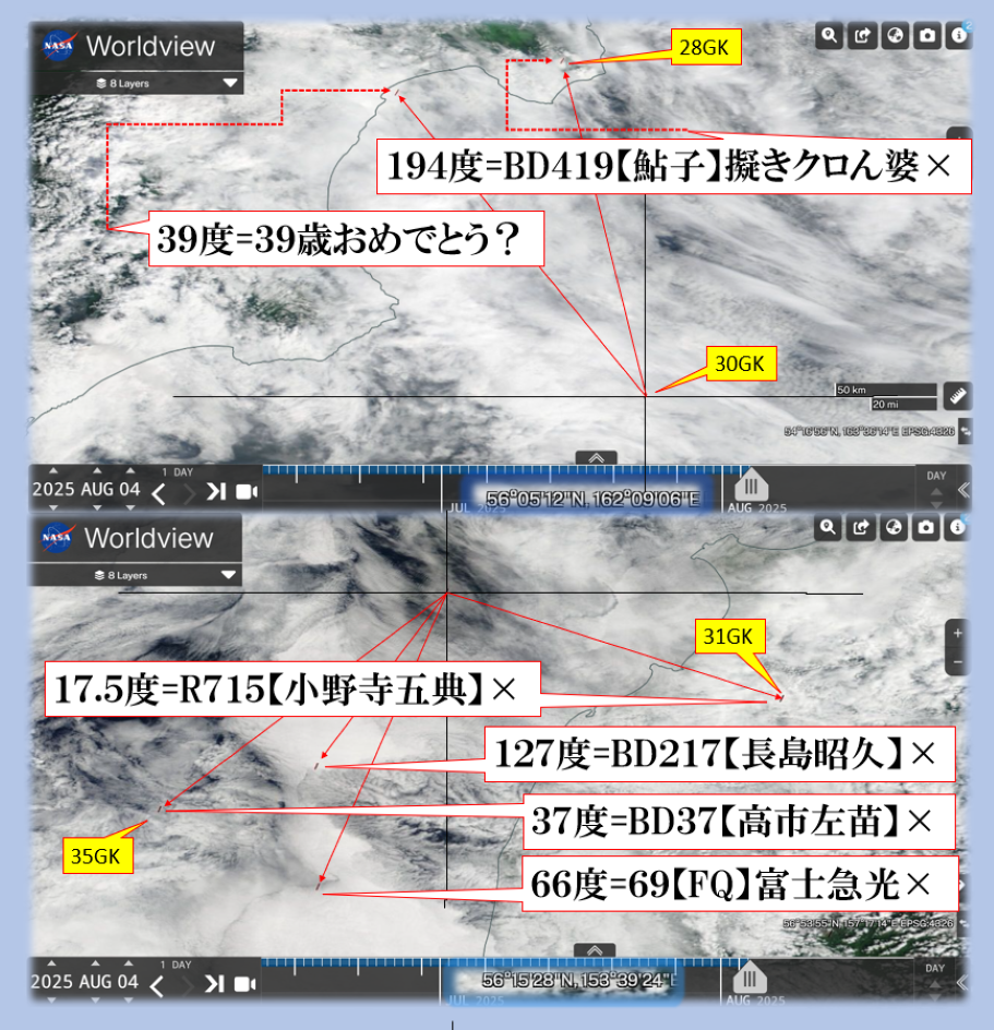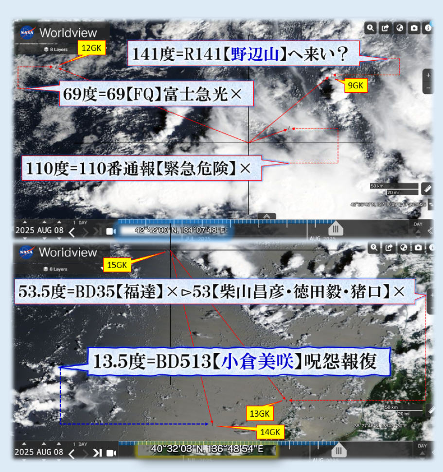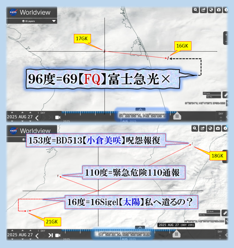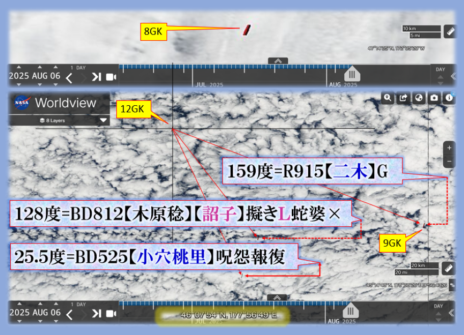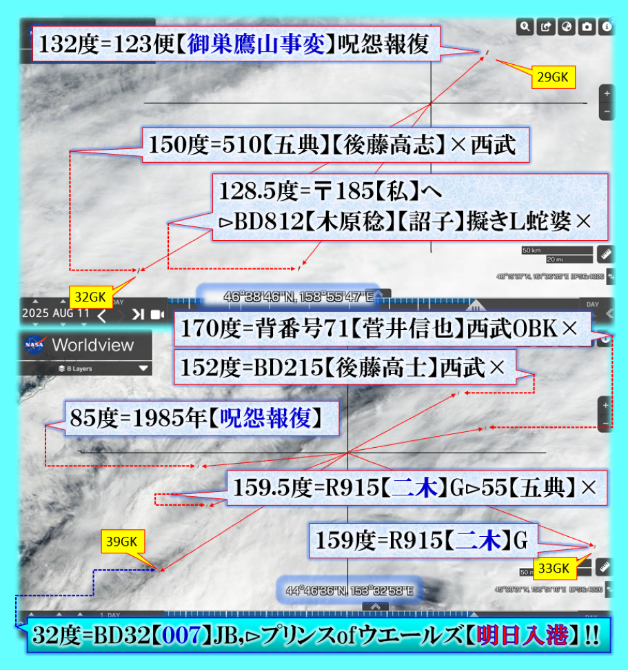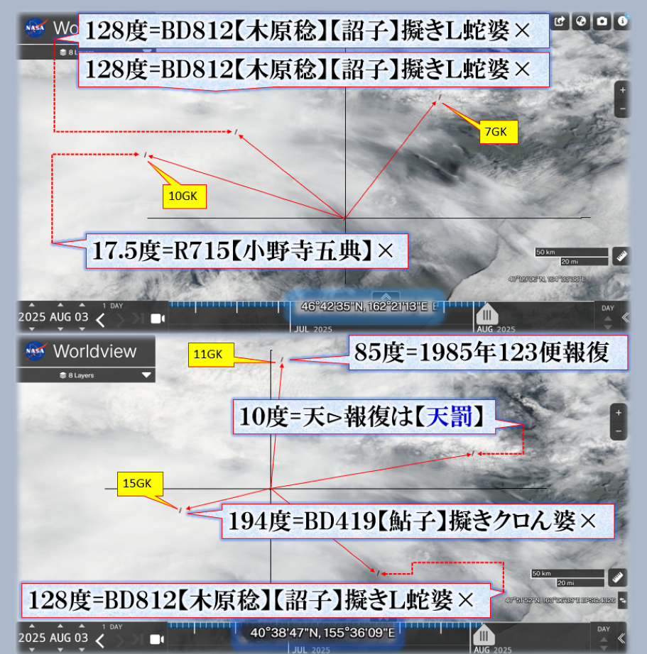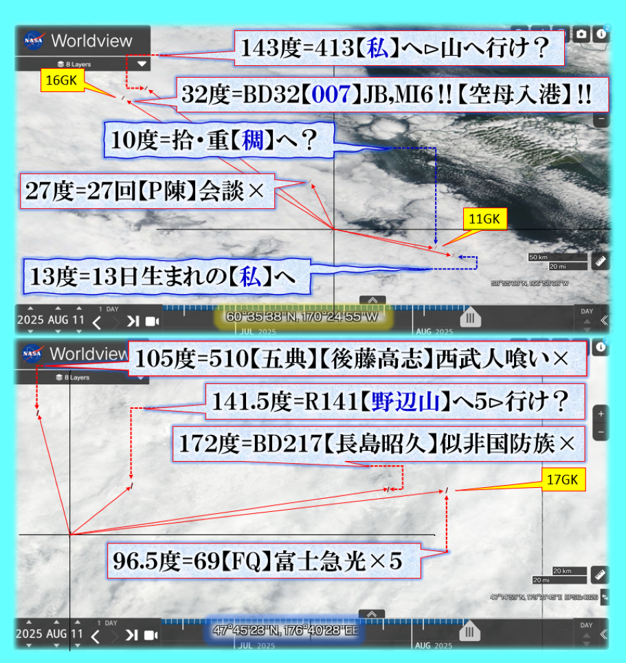 北太平洋上空から何故日本列島東側へ、中京上空を横断して京都北部へ渡り、朝鮮半島へ出て居るのか❓最近はベーリング海域とか「アラスカ」方面に多く出現して居た事を見れば昨日の出現は【日本列島】に何か起きそうな事を【示唆】して居る様に思えて成らない、来週は【あれから40年目】の【御巣鷹山事変】何か起きそうな雰囲気です。 sy