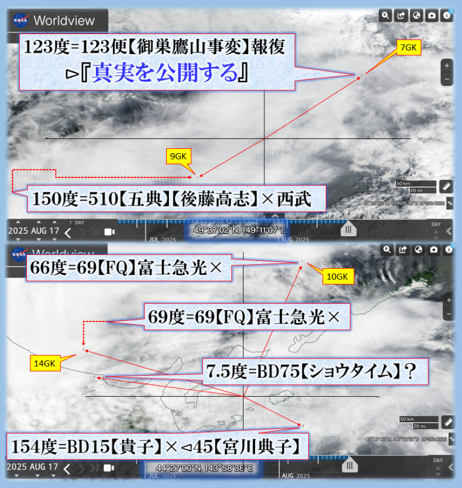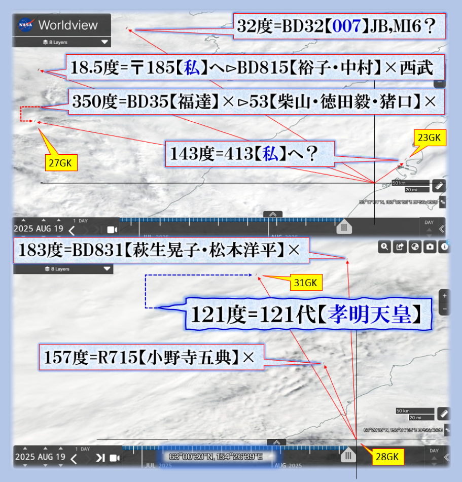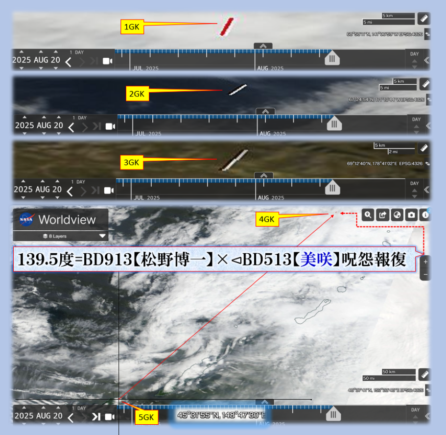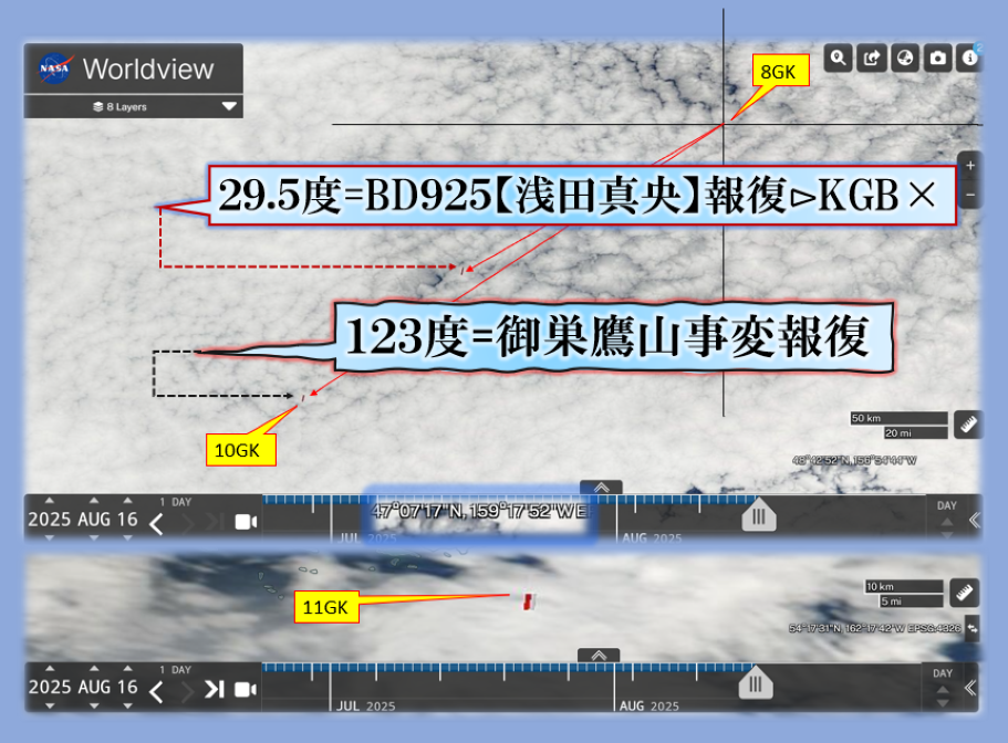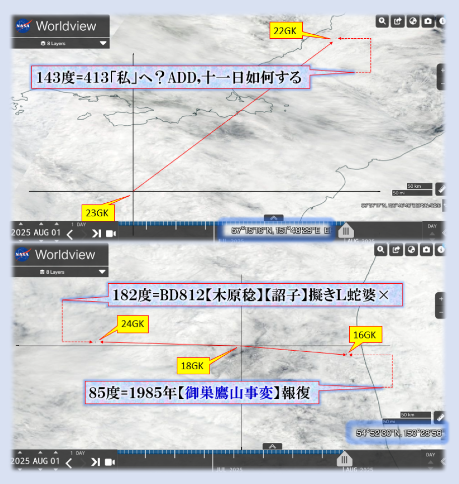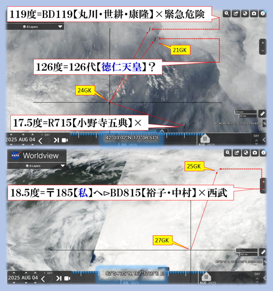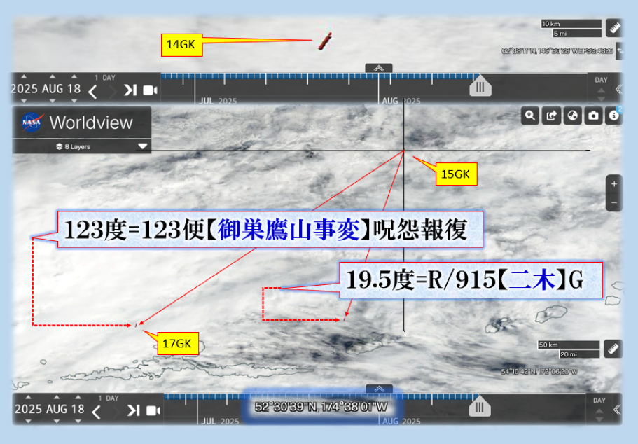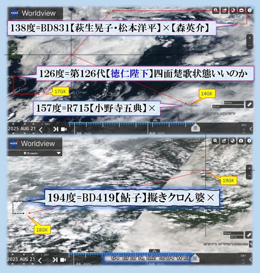北太平洋上空から何故日本列島東側へ、中京上空を横断して京都北部へ渡り、朝鮮半島へ出て居るのか❓最近はベーリング海域とか「アラスカ」方面に多く出現して居た事を見れば昨日の出現は【日本列島】に何か起きそうな事を【示唆】して居る様に思えて成らない、来週は【あれから40年目】の【御巣鷹山事変】何か起きそうな雰囲気です。 sy