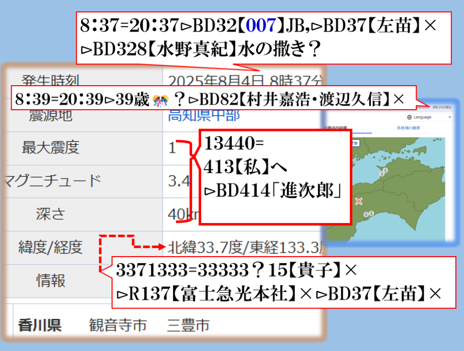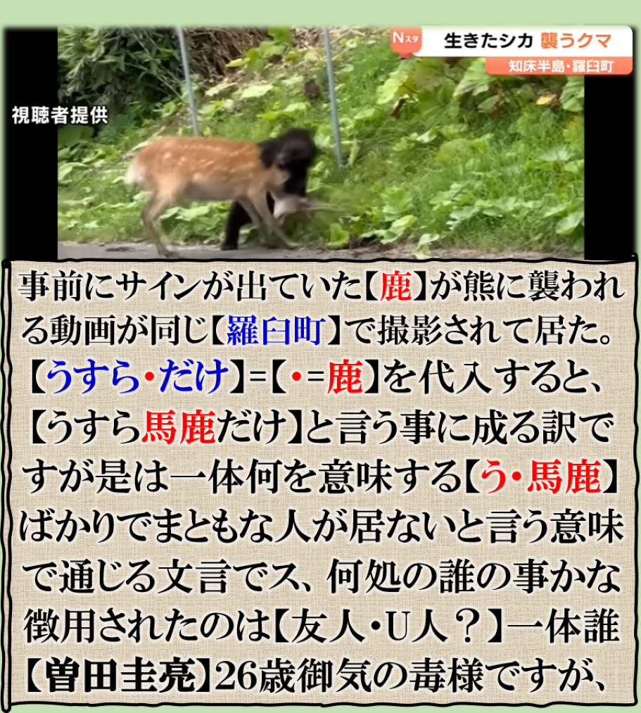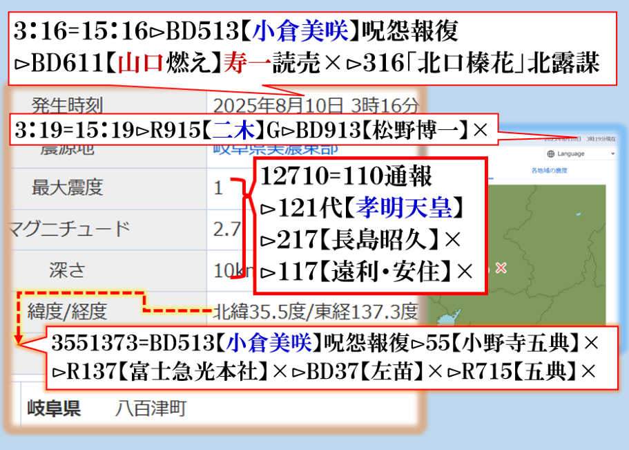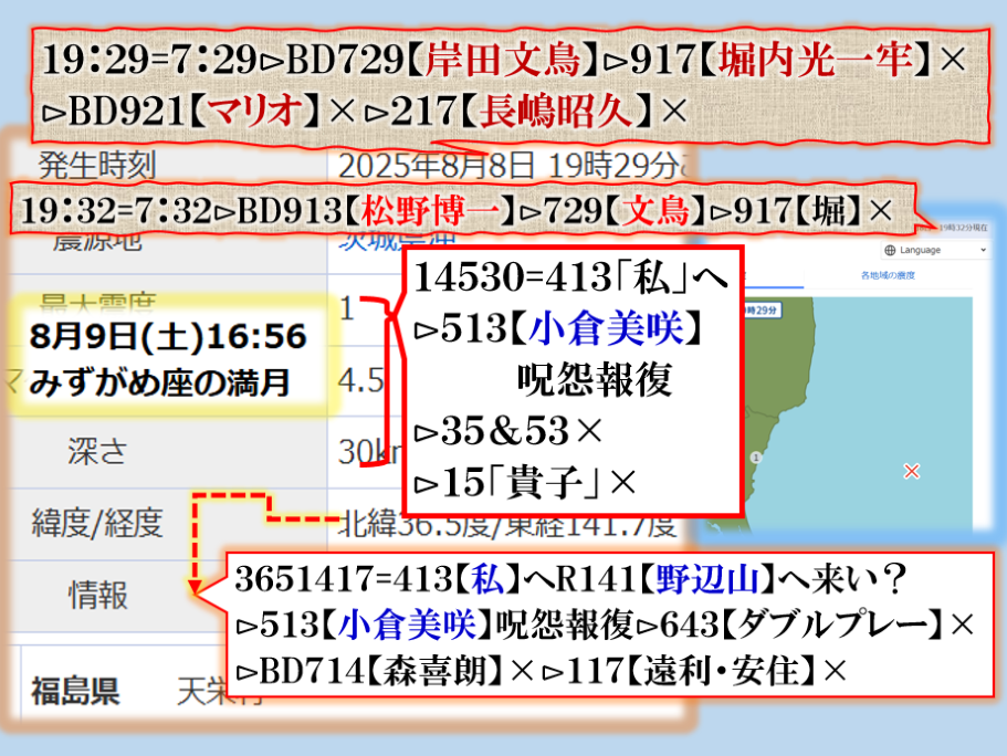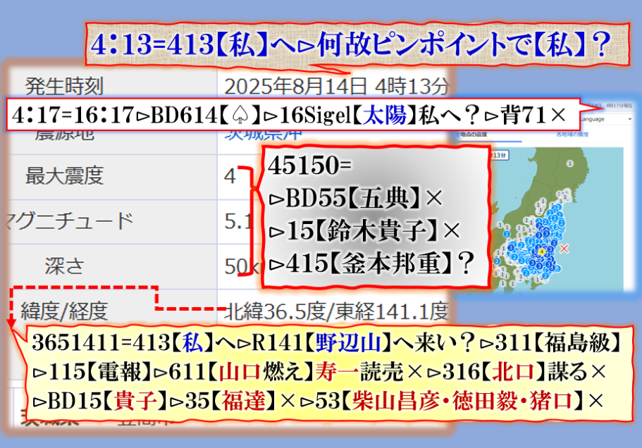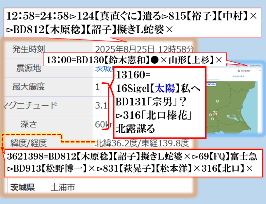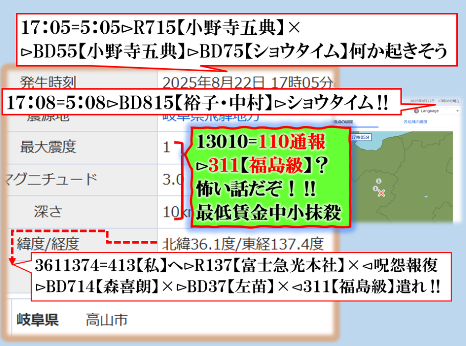 震源地が【鹿沼市】付近‼是だけでも見過ごせません、思い出して下さい知床の【羅臼岳】で熊に遣られた事件が連動して居る、【ラウスダケ】=【うすら*だけ】=*「馬鹿」⊳うすら馬鹿だけ、がはびこる永田町とその【闇】勢力に対して【作戦行動】が動き出して居る事を【広告】して来た訳です。819の地震は函館【大沼公園】近郊でした、此処で次は【沼】だと言うサイン⊳翌日20日に【鹿沼近郊】で地震です、完全に【沼】で連動してきました、何故【沼】なのか❓⊳【羅臼岳】の「うすら馬鹿だけ」の馬鹿⊳「鹿」を出す為に【鹿沼】だった訳です。その「おバカ」だけの自民党『旧安部派』の動きに牽制して居る、国際的に見て最も真面な政治をして居る【石破】を蹴落として【裏金議員】やそのセクトの新顔を【首相】に揚げて権力復権を狙う【うすら馬鹿だけ】のお馬鹿セクト等に対して【警告】である、同時に何故【私&宇都宮】に【金】の表示が出て来たのか❓その意味を理解しないととんでもない【祟り】が見舞われる事を【示唆】してきたのです、覚悟しろよ【私&当家】には【助けが居る】からだ。 sy