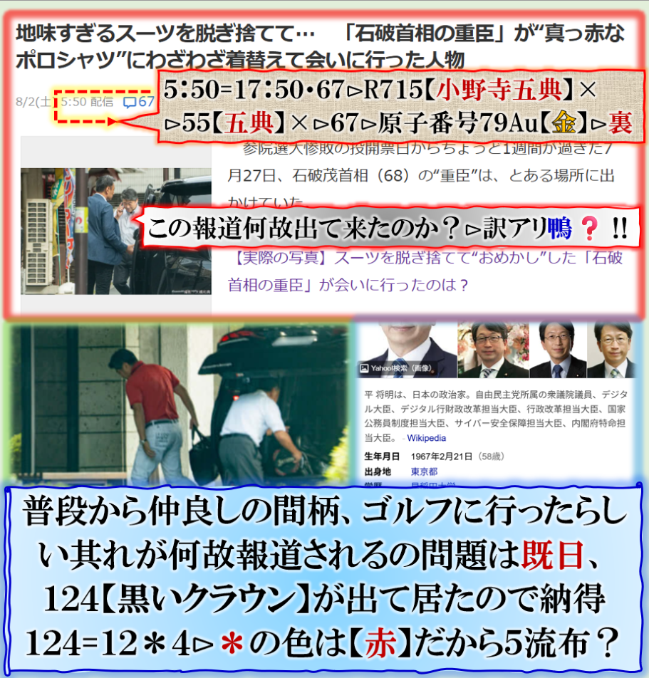 平将門:平将明=門は明⊳日月⊳SUNに就き❓やっぱり「3」がラッキーだと言う意味であり「3」=赤色=赤ポロシャツと意味が【同期】いている、だから、無意味な報道は無いと思う、・・・全部【暗号化】報道です。是が一体どうなるの❓?❓?❓ sy