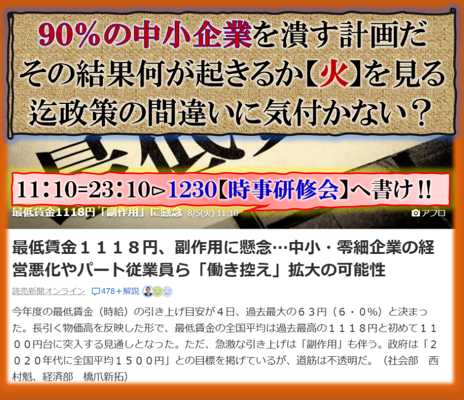 @0805⊳最低賃金過去最高+でガス抜き報道が出た✖✖馬鹿か、