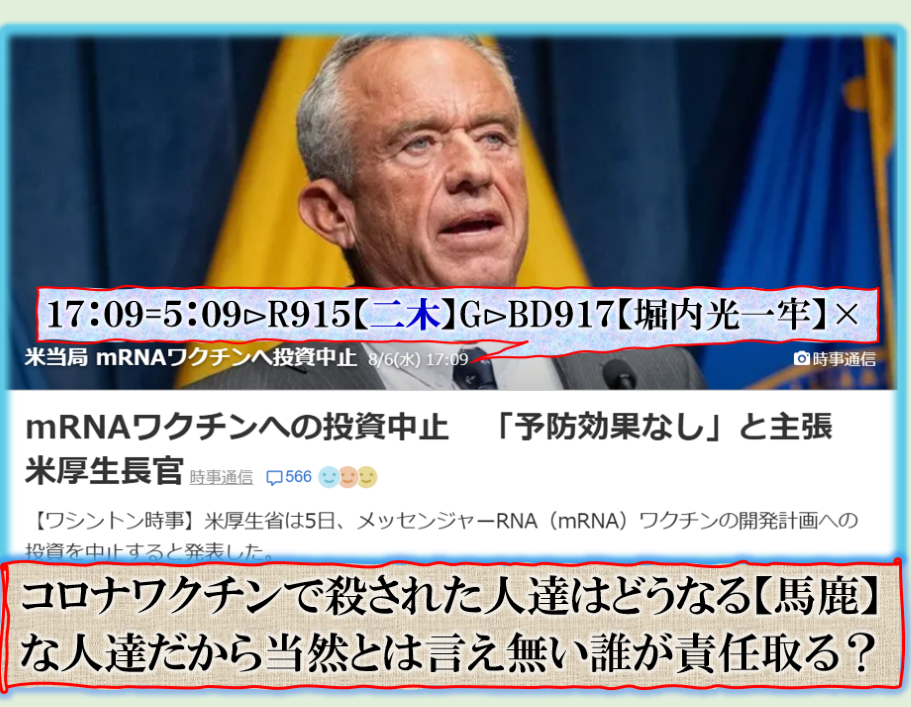 一昨日だったか、この時期に【ビルゲイツ】が首相官邸訪問?其処で合意された案件が何と【アフリカ諸国】へワクチン支給援助金として数百億円を日本国が援助すると言う物である、いかにも【援助】とは心地よいお話だが、知って居るのか米国保健相?【JFKジュニア】等が公言して居る【コロナワクチン】に有効な効果は無いと断言して居る事案にたいして、新たなる【援助金】を出すのか❓是は【アフリカ人】を罠に嵌める行為では無いのか❓表と裏の動きが公然と行われて居る、国民は何を信じれば良いのか❓国家としては【援助金】を出せと言われればNO、と言えないから【ビルゲイツ】が来た、その【ビルゲイツ】のご自宅はその【軽井沢】に或る。何か起きそうなキナ臭さを感じます。  sy