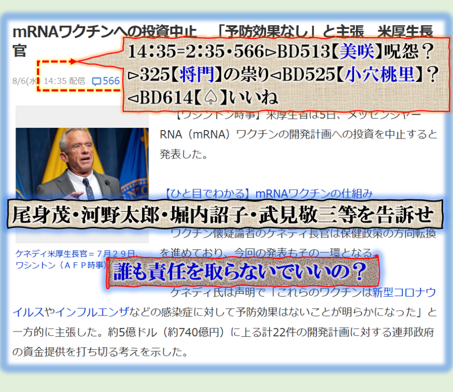 世界はこの結果で如何するのか❓誰も責任を問われないのか❓それでいいのか無残に殺された犠牲者にたいして如何するのか❓必ずその報いは【祟り】としてやって来る、【武見敬三】を落選させただけで済ませるな、誰も動かなくても【天界】が動く筈その【報いは】形を変えて関係者へ【負のカルマ】として襲い掛かる筈だと思われるのです。 sy