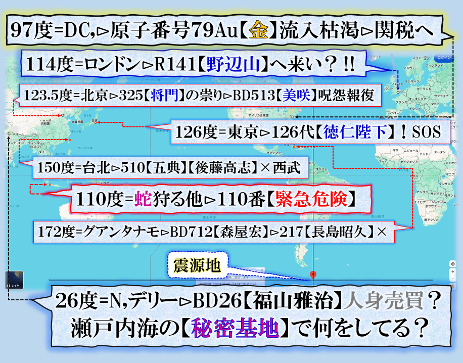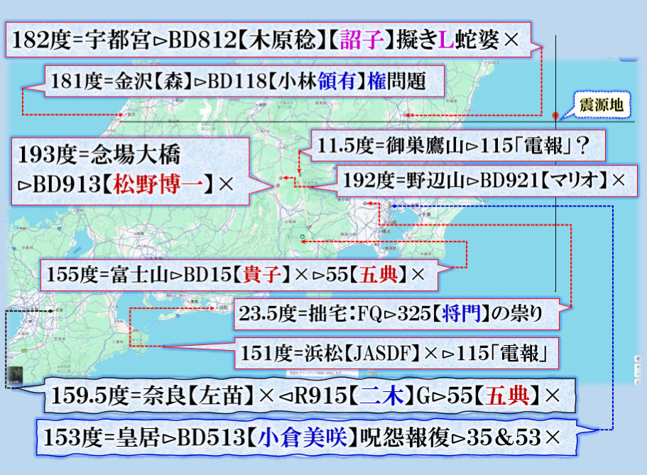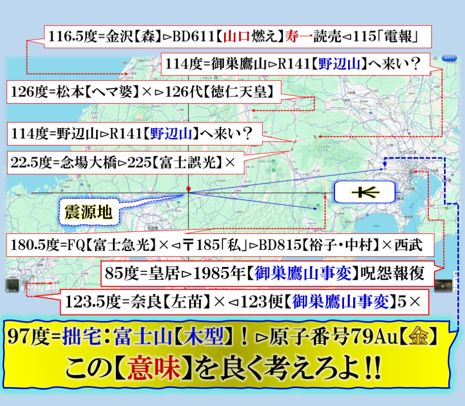 是は警告の振動電報として読み取れる、『国分寺』拙宅付近は全く揺れずに【宇都宮】を揺らす意味は間違いなく【私】の事を意味している【領有権問題】の事かも知れません、このまま無視し続けるならやる気かも知れません、本当にそれでいいのか❓偶然だが今日TV,で【富士山】噴火の場合の注意動画が公開されて居る、更に今実は【軽井沢】では重大な事態にあり、各国関係者、当然MI6も含めて話し合いが行われて居る可能性がある【上皇夫妻】が滞在中です、無意味に軽井沢へ行っている訳ではない、無意味に英国プリンスオブウェールズが来日して居る訳では無い、もしかすると【開戦前夜】一触即発の時を向かえている可能性さえ考えられるのです。空気銃とは言え【私】を狙撃する奴が居るのか❓事実だから、軽く見てはいけない事なのです。 sy