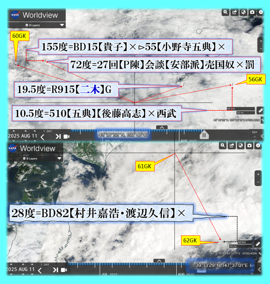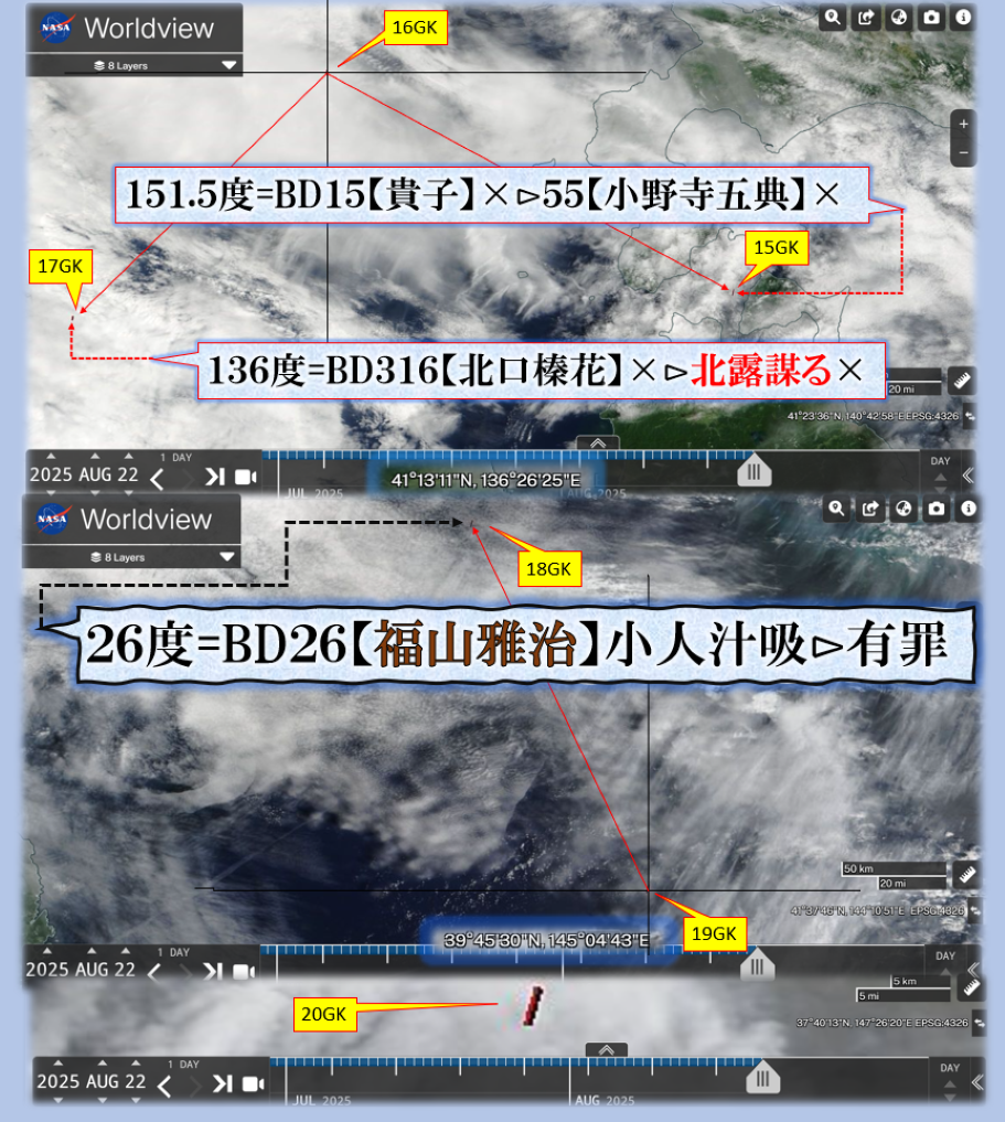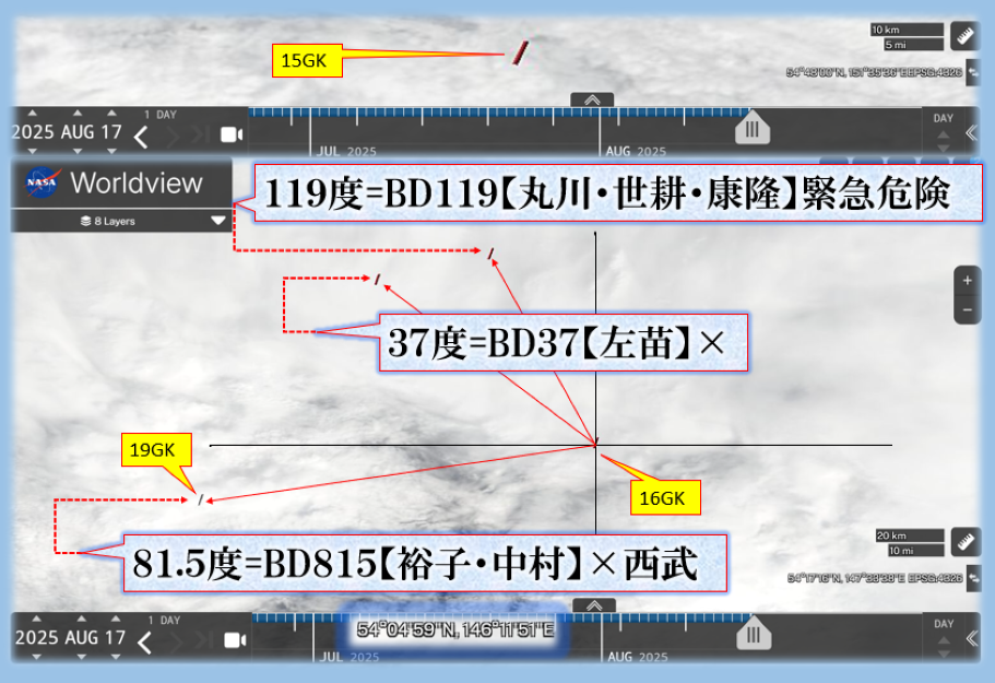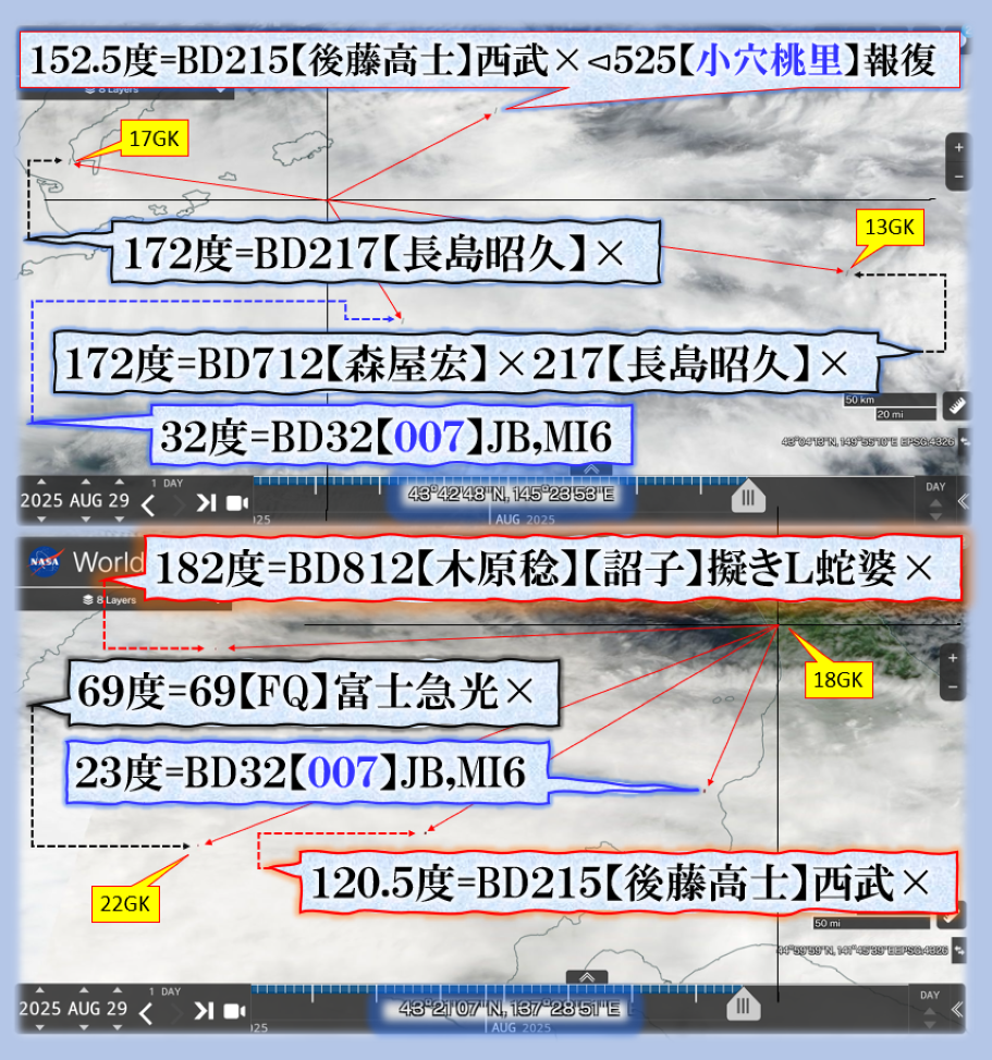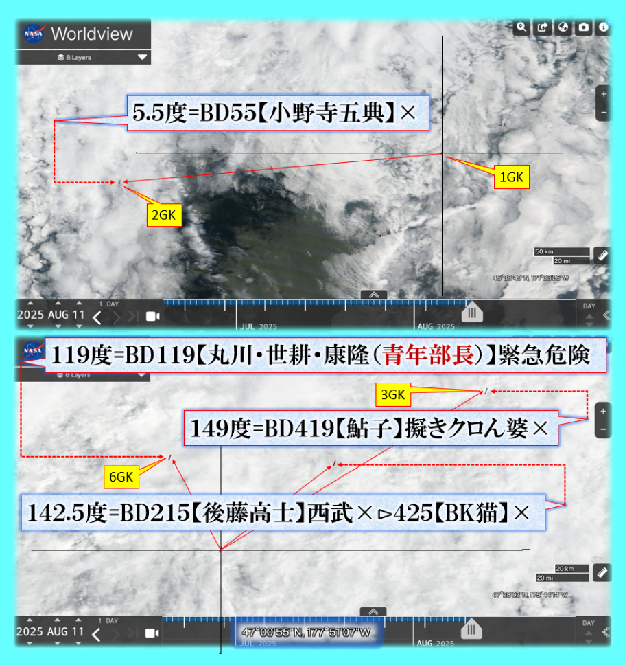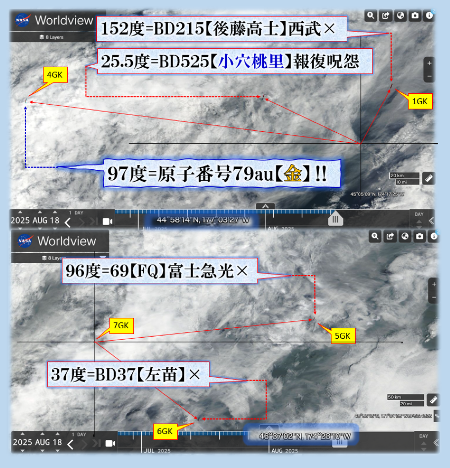 今回は【日本列島】全体を【照準】に置かれて【岩船】が出て来やような気がする、最近の傾向では北太平洋や「アラスカ」方面に多く出ていた訳ですから、今日は意外なフォーメーションで出現してきて居ます、その中で⊳18&20号基から調べてみました、違いが微妙です。 sy