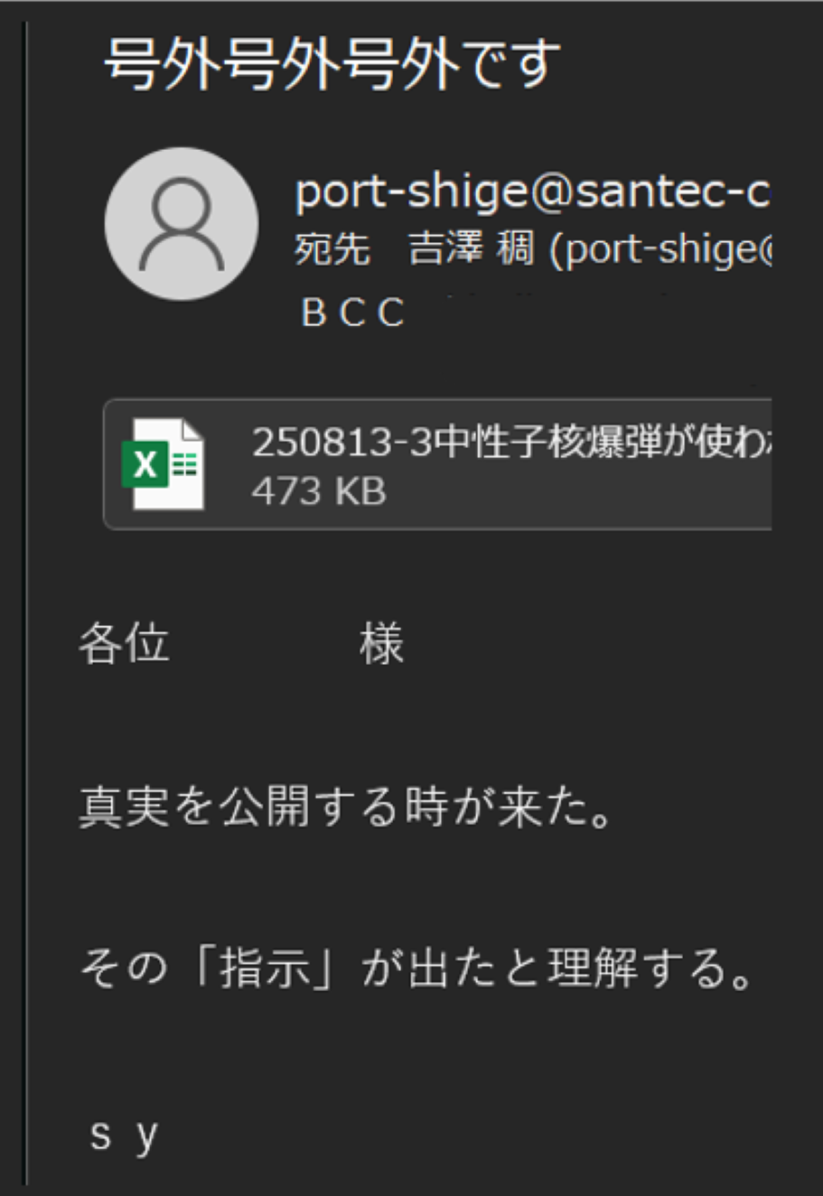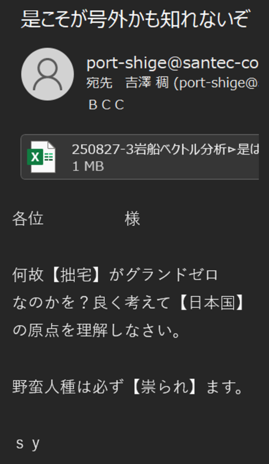 メッセージとして強調して居る事【金泥棒】を許さない。このままではその【祟り】として何が起きるか解りません。 sy
