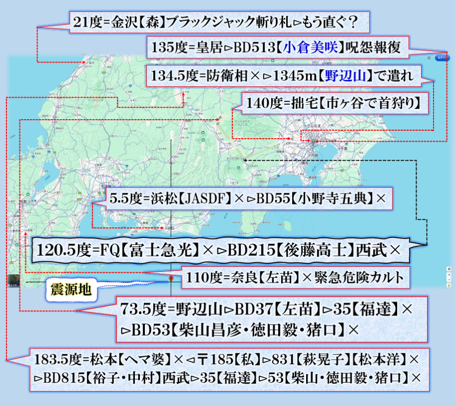 そもそも【諏訪湖】=「スワ」と言う言葉の意味は【大地震】の事を指す物です、昔【阪神淡路地震】が発生した時に、その前日だったか❓【立川市】に或る【諏訪神社】が炎上倒壊した事からその因果が有る事を自覚して、地震研究を始めた経過が有ります。今回の震源地がその意味の【諏訪湖】近郊であるなら、必ず何処かで「311級」が来てもおかしくはありません、ご注意下さい、23日=新月日【黒い月】です、嫌な予感も感じます、ご注意下さい。 sy