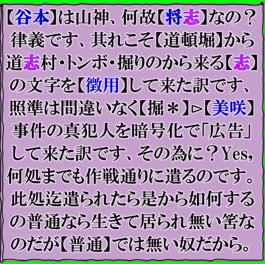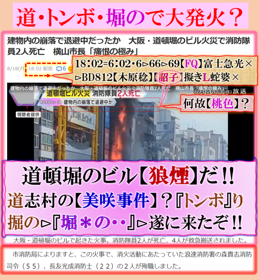 FQ【スケート部員】=【堀川桃花】が居る何故【道頓堀川】から狼煙が揚がったのか❓⊳もしかすると、其れも含めて全部【暗号化】で仕込んで居るから【道頓堀】は絶対に必要不可欠だった、狙いは全部【レモン蛇婆】へベクトルが効かせてある事が読みとれるのです、益々エキサイトして来ましたね【あれから40年】目の暑い夏、まだまだ終われません、何処までも遣る筈です、絶対に許せないのは【正義】の意味を理解すれば、当然何処までも遣る事は明白だ、その意味で【狼煙】を揚げて【示唆】して来た訳です。 更に【熱い戦いご期待下さい】sy