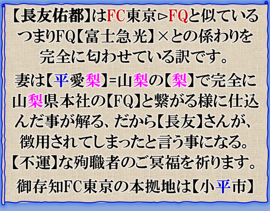 是は妄想で書いて居るのでは無い、【実録】である、都市伝説では無い本当に起きて居る事を時系列的に証明しながら書いて居る,【実戦状態】にあると言っても過言では無い、更に昨日の【札幌競馬】12レースで無印の穴馬が1着に来た【大穴】を開けた馬名は【ピンクジン】当然だが【桃色】をシンボルとしている、甲斐山梨2区の【堀内詔子】を指す訳ですが、その詳細については此処では公開出来ません。つまり紅白歌合戦では無く【東西冷戦】の最前線が日本国である事を彷彿とさせている事件化【現象化】が今の日本国で本当に起きて居る事を自覚して下さい、速く貴方も【覚醒】して下さい。 sy