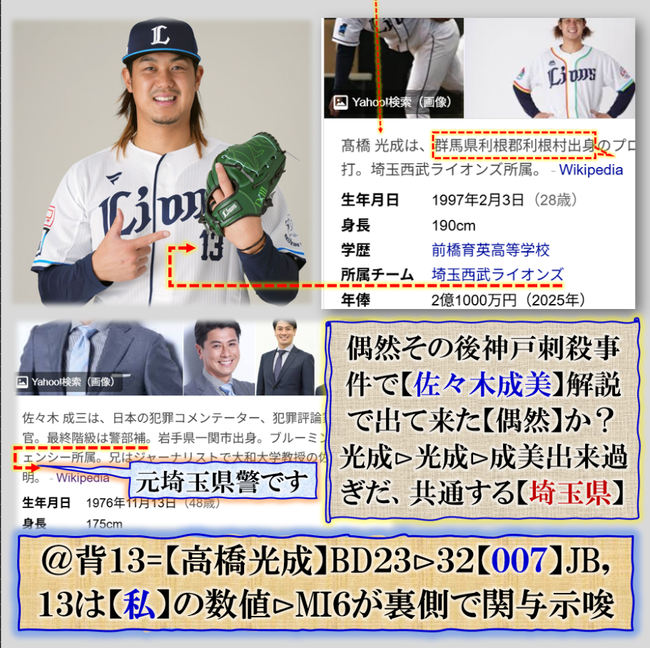 【のの】と何と遂に出て来た【佐々木恭子】の事らしい、献上の罠に嵌められた【渡辺渚】の問題でその名前が出て来て居たのだが、本人は全く【黙】して逃げ切ったと思って居たかも知れないが、何と此処で遂に【暴露】されている構図です、その相手が【高橋光成】かどうかは解らないがその【構図】で実態が有ると言う事だろう、本当に其処迄遣るのか❓暗号化の常識であり、何処まででも手口を変えて出して来るのです、元埼玉県警の【佐々木成三】は【佐々木】を出す為に【不可思議】な出演でモーニングショーに出て来た訳です。 sy