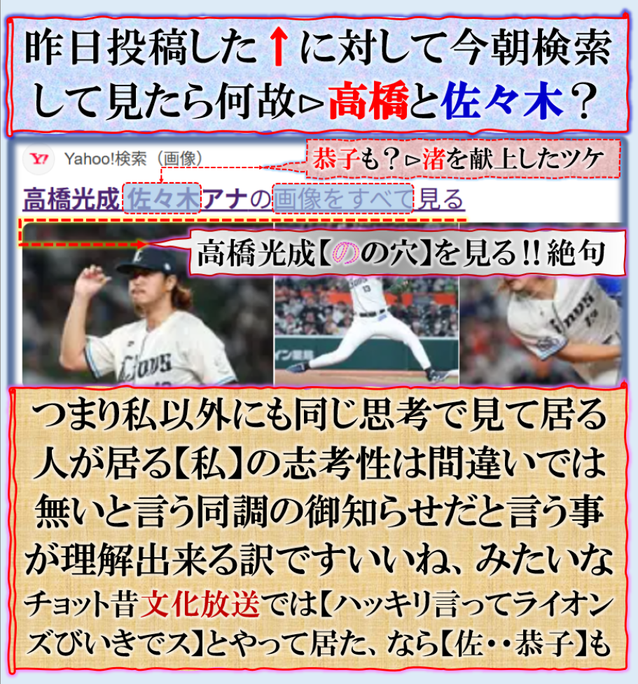【高橋光成】佐々木アナの画像をすべて見る⊳このタイトルで検索に出ている事自体が非常に不自然であると思いますが、その訳が隠されて居た事が良く解ります、如何するの??❓汚台湾TV,!!‼ sy