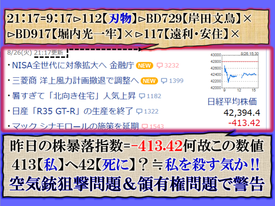 故意にコジツケだろうと、普通なら思う筈ですが、実は違うのです、【暗号化】の世界での読み方が間違いなく【手法】としている事実を見れば、この数値は偶然であると思うのは大きな間違いなのです、軽井沢周辺の異変・英国情報部の意思表示等がその背景にある事も本件は見逃せない表示である。TICAD会議が開催中、その関係国の多くが【モスリム圏国家群】?宗教的な背景も深く感じます、実は此処でも【移民受け入れ発表】だと誤解を招く動きで大揉めである、何処の県で大騒ぎに成って居るのかも不可解、実はそれも【意図的・計画的】な背景があるのではと言う疑いも有ると思える、是も【日本国】の領有権無視の動きでは無いのか❓何処の誰が裏に居るのか❓問題は深い闇にあると思えられる。考え過ぎか❓モディと石破会談で何を合意したのか何も信じられない、其れが今の【日本国】の問題なのです。 sy