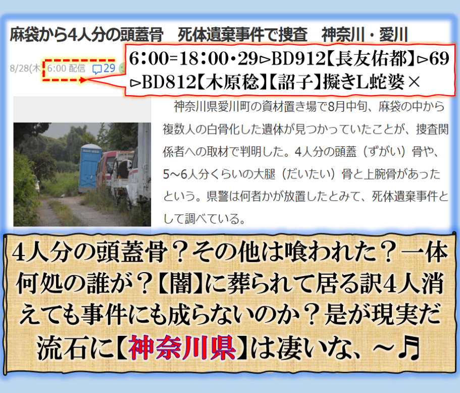 座間事件も神奈川県だよね、凄い処ですね【黒岩君】闇が深すぎだろう、どれ程居るの【人喰い人種】が、【黒岩裕司】君お前もか❓❓ sy