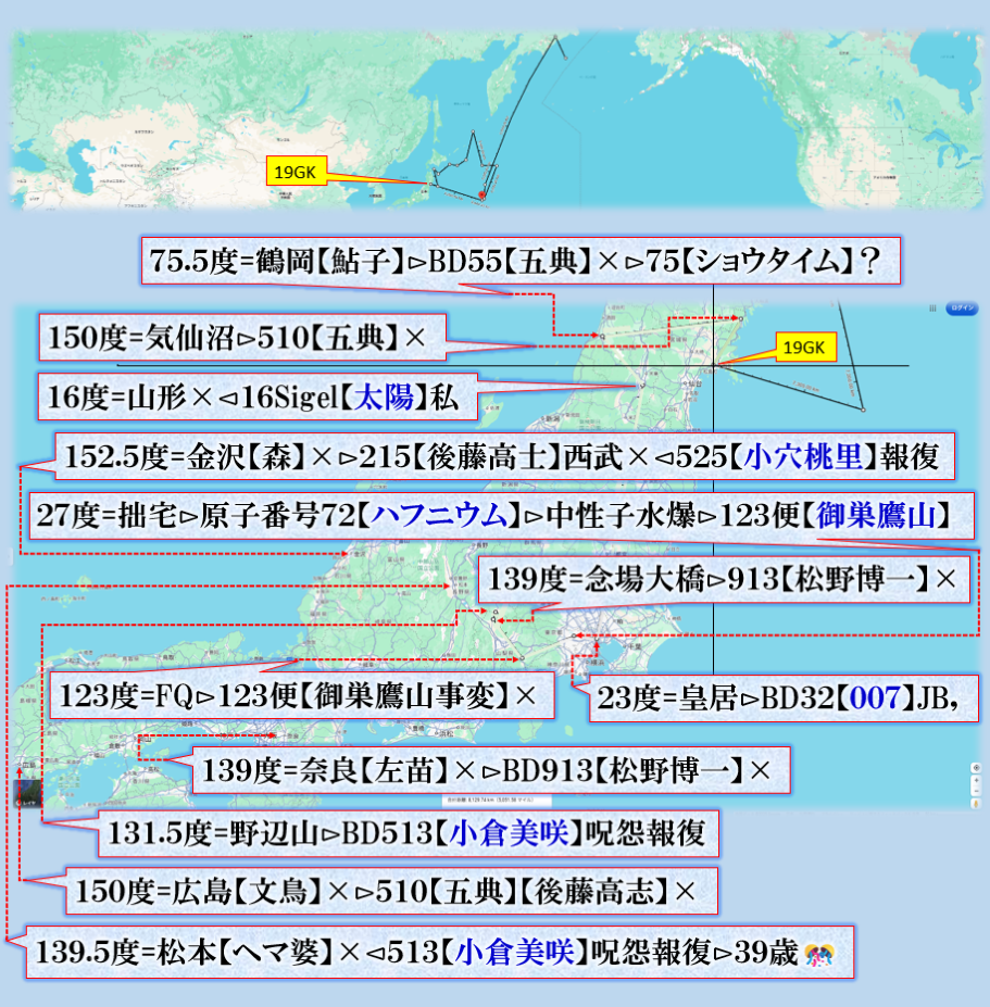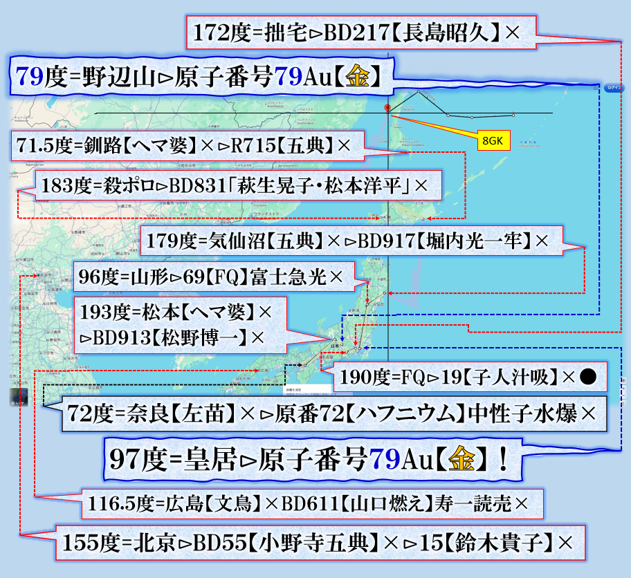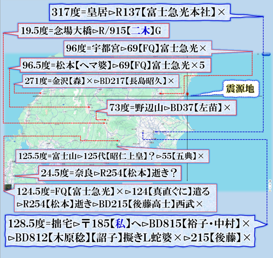 【皇居】:【いわき市】が同線上であり偶然では無い、【いわき】=【Y・木】?呼ばれて居ます、・・・? sy