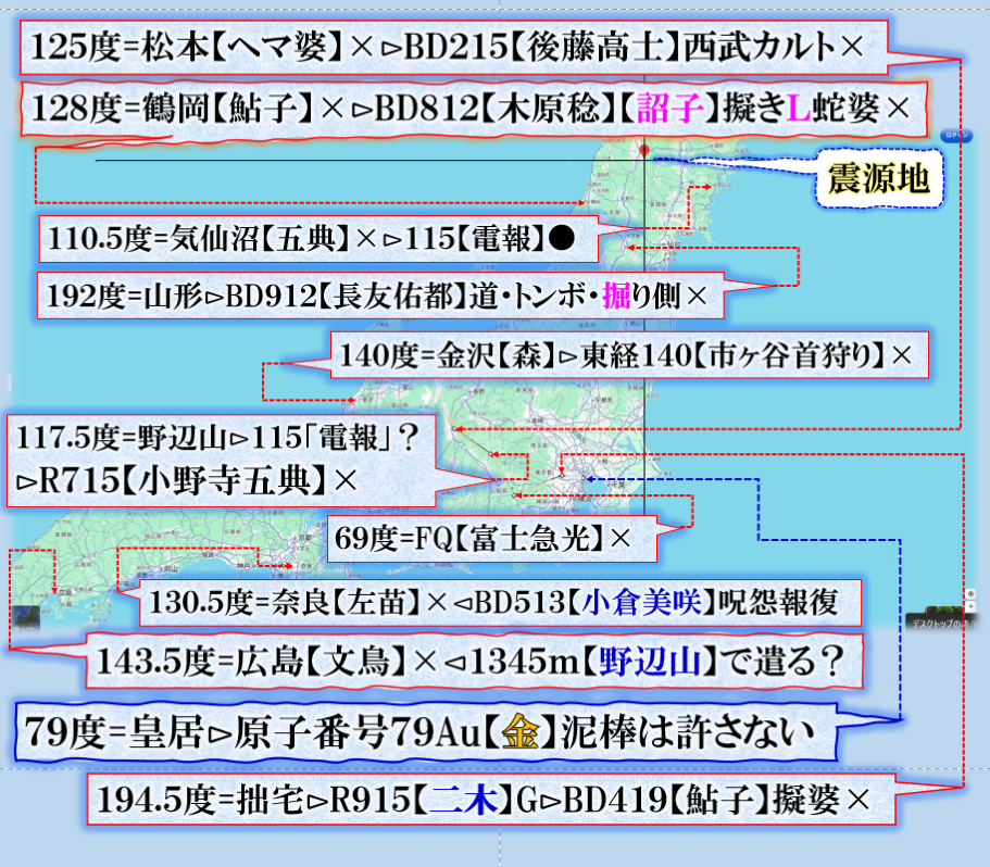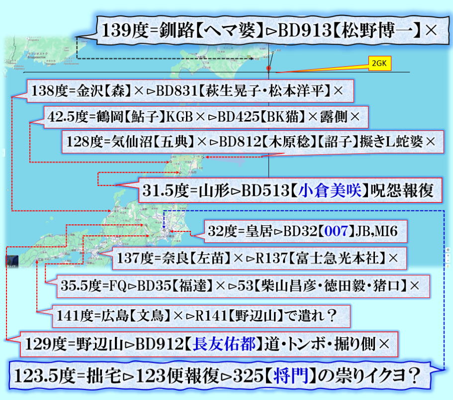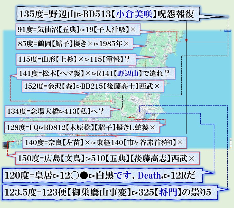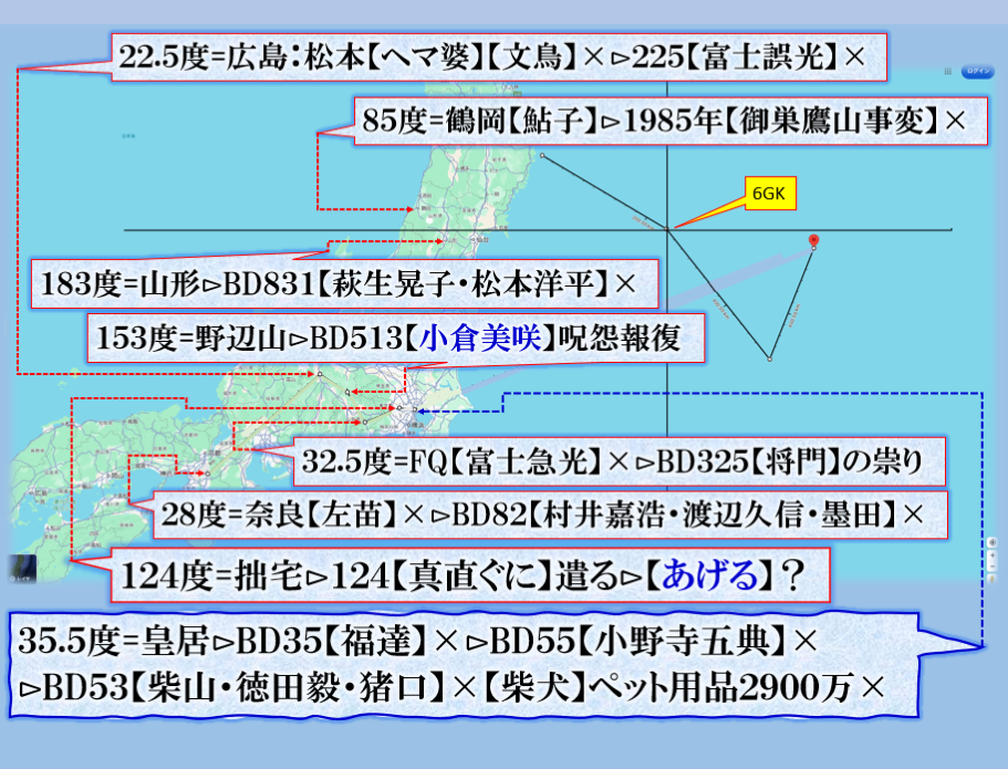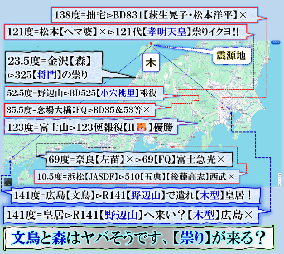 注目点は3個ある=①その木型で示唆する物?【広島】文鳥君。②金沢で来た数値が【将門】の【祟り】の数値は【森喜朗】ソチ五輪で【浅田真央】失敗事件に対して【あの子は大事な所で良くコケルから】と言って日本国民の反感を買った人物【異邦人】に来るぞ【呪怨報復】③上から見て居る【富士山】が、何と123度、つまり【123便】で殺された【阪神球団社長】中野さんの怨念に反応して居る事です。【天界】は全てをご存知であり、誰も見て居なくても【総て】を見通して居る存在が【あれから40年】目の優勝に対して応えている事が解ります、是で何かを学ぶ必要が或る訳です。【猿族=野蛮人種】等にはその様な感性はありません、地獄を見る事に成るだろう。 sy