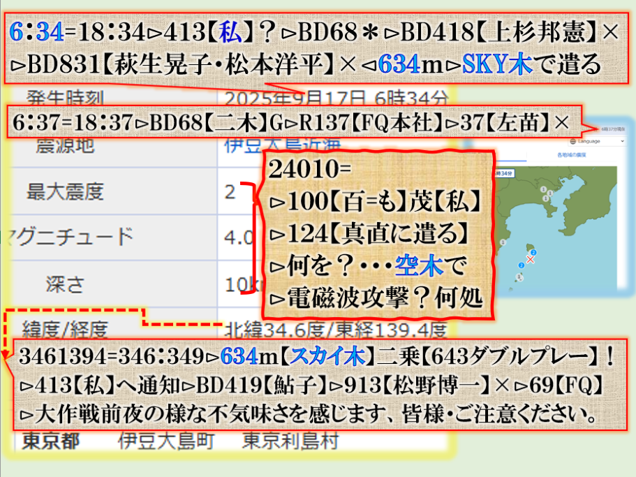 本件は【三宅島近海】Gでは無い筈⊳暗号化では間違いなく【宮家】マジ【金塊】自身である。皇居でもあり、【当家】の問題でも或る事は明白なのだが、誰もこの話を理解できる人は居ません。其れが【暗号化】の世界である、解る人だけ理解すれば良い。  sy