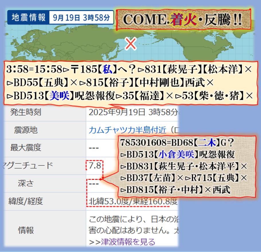 今朝未明のGはカムチャッカ半島沖で地震だ?其れが意味するものとは、是なのかも知れない❓是からは乾燥の季節に向かうのだが、早々に【注意報】⊳着火部隊の作戦行動が侵攻しますよ、と言う事では無いか❓鉄砲やミサイルでは使用できない、その代わりに【着火裏部隊】が動き出しますよと言う訳です、皆様ご注意下さい必ず【ソレ】は本当にあります、裏部隊が動き出します。是は【戦術】ですから必ず実行される筈なのです、何処の誰が遣られるのか❓注視して行って下さい。 夏場でも出動して居た事は皆様も御理解の筈ですあの【道頓堀川】のビル火災!!!⊳狙われたのは【長友佑都】では無くて【道志村事件の犯人は掘り側】です。⊳【伊東美咲】を喰ったのは【掘り側】だと言う暴露記事だったのです。 sy