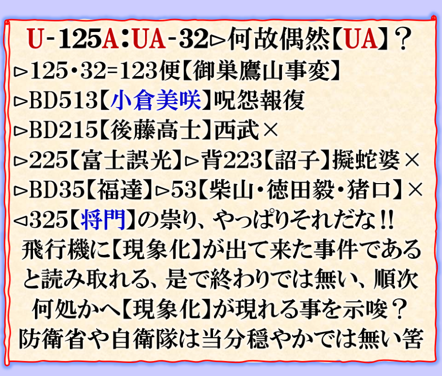 絶対に変ですから、是からこの続きとして【次々】と各地に【現象化】が起きる筈だと読める訳です、特に危険は【航空機】それだけでは無いと思いますが、要注意です。 sy