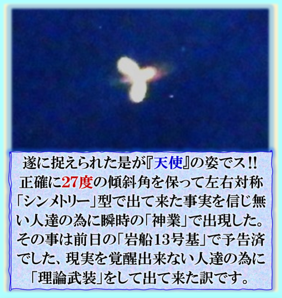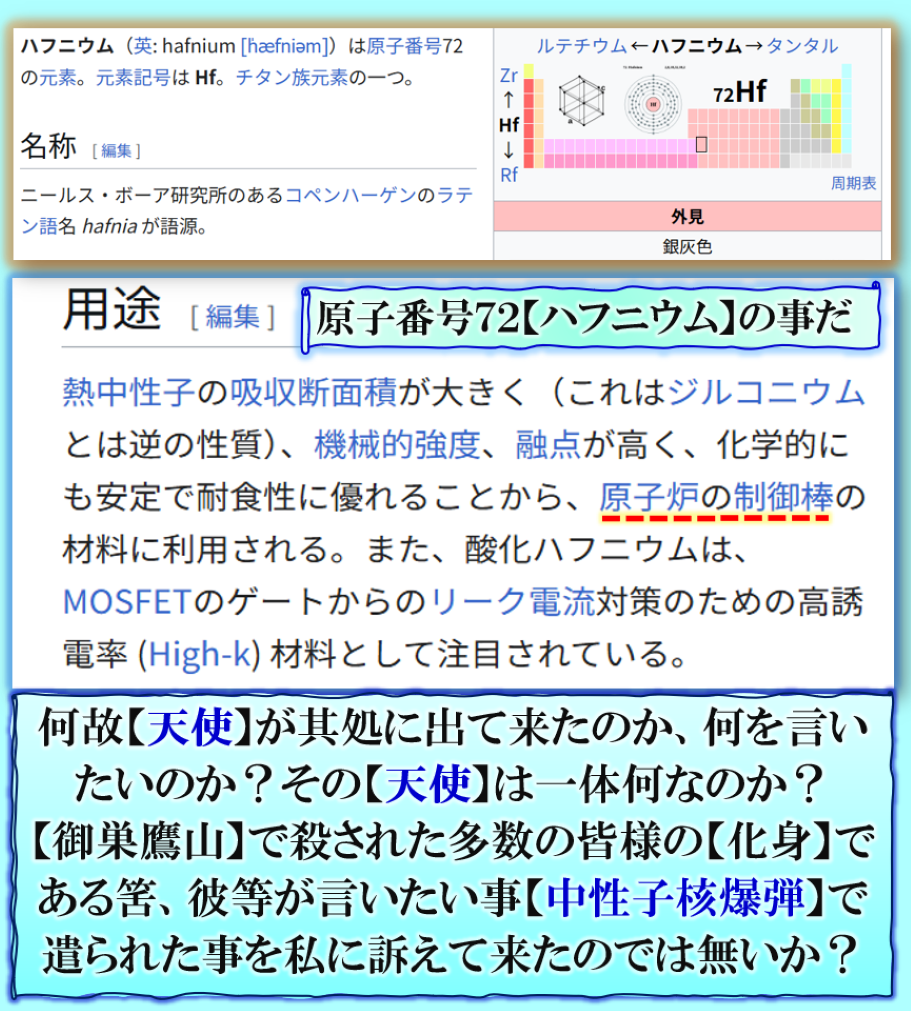 天使は本当に居るのです、其れが何を伝えて来たのか❓【御巣鷹山】で中性子核爆弾が実戦使用された事を伝えて来たのではないかと思えて来ました。是は【私】に向けて発信しなければ伝わらない事だから奇跡的なアングルでその数値72を示してくれた事が解りました。 sy