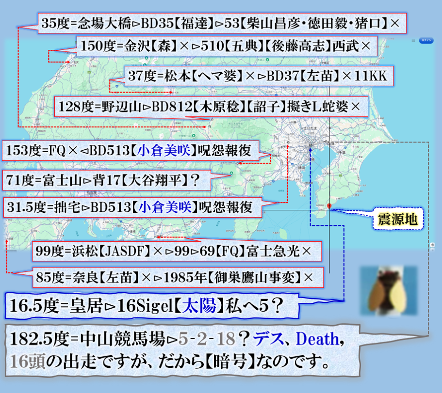 その文字がでか過ぎる不自然さがある、その意味を考えて見たら、其処へ辿り着くのかも知れません、明日何処かに【ガタン】が見舞われる、その読みに【理】が或る、問題はその目的地です、【東海・東南海沖】だとしたら【日本国】終わりそうだな❓?❓それ以外に何処なのか❓本当に【明日】なのか❓もう直ぐ【明日に成る】ご注意下さい。この地震はその予告【プレアドバイス】だったかも知れないのですから、~~~♬ sy