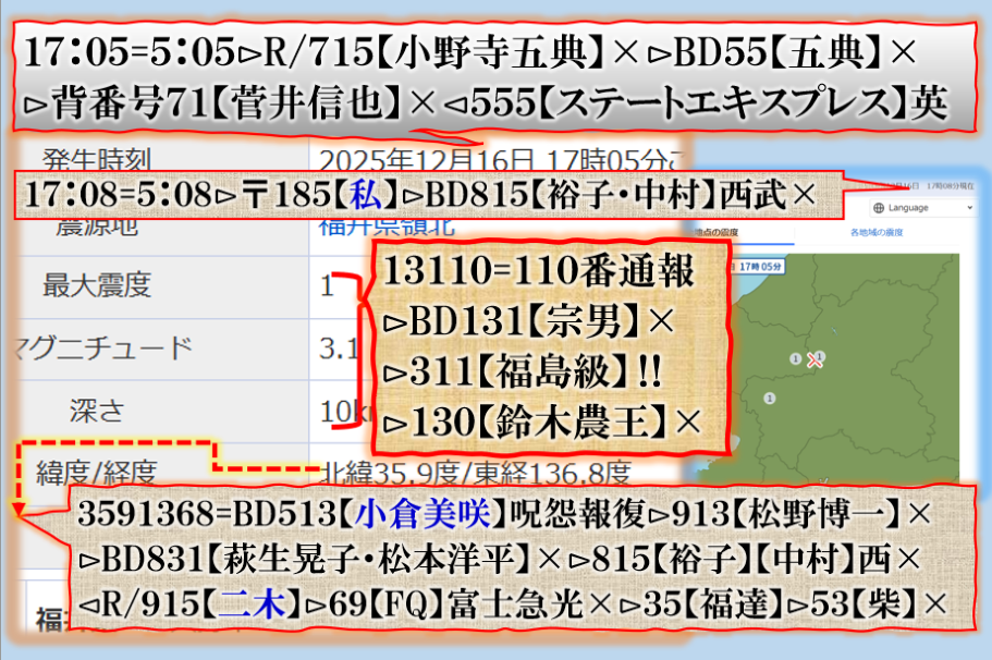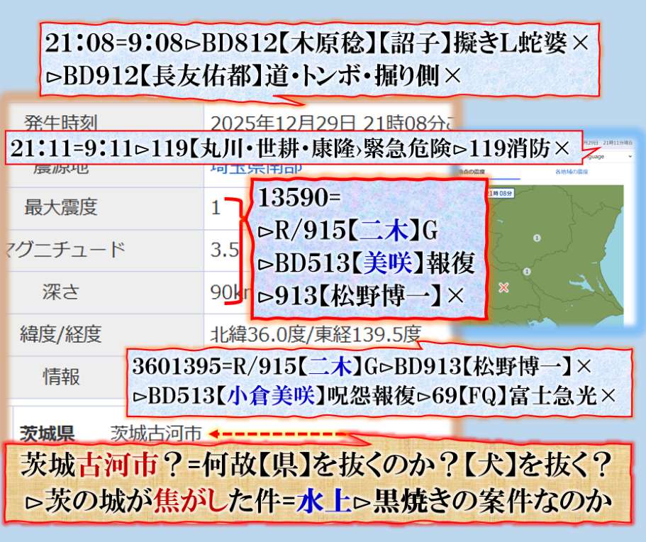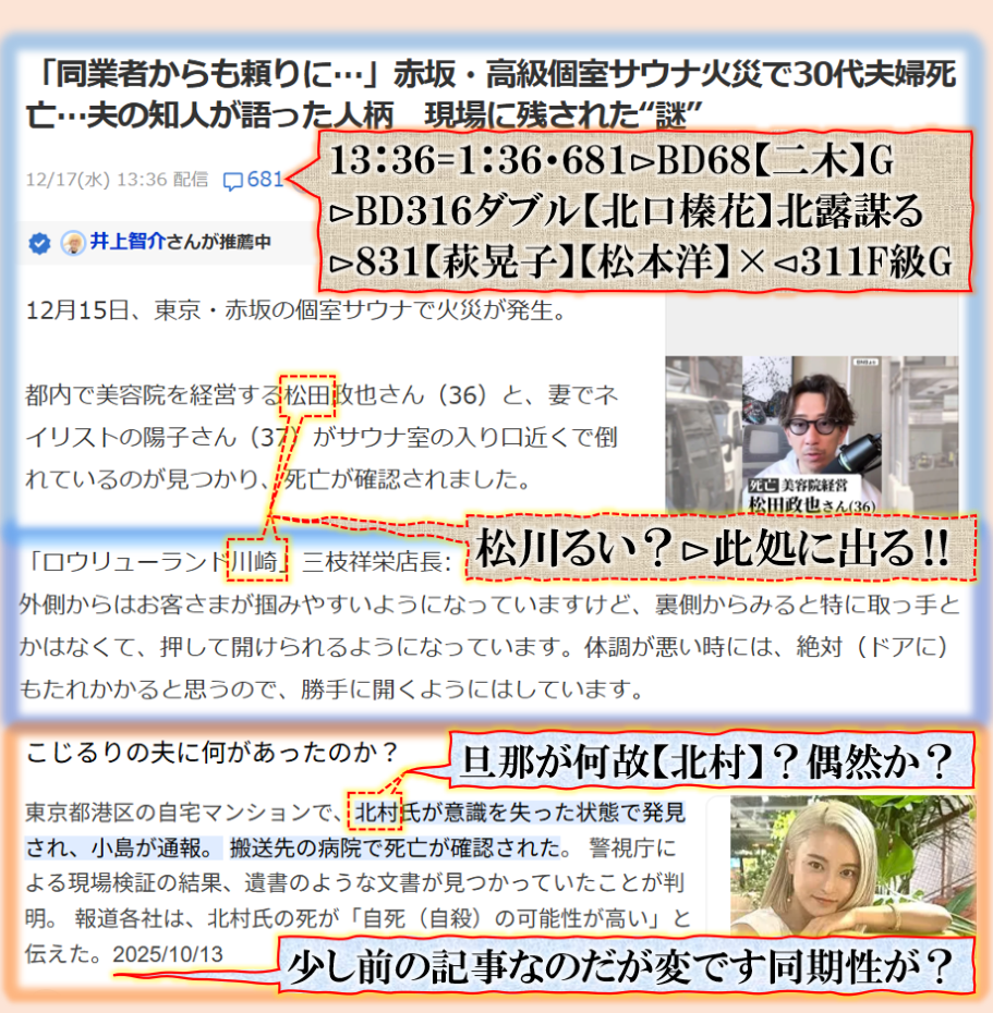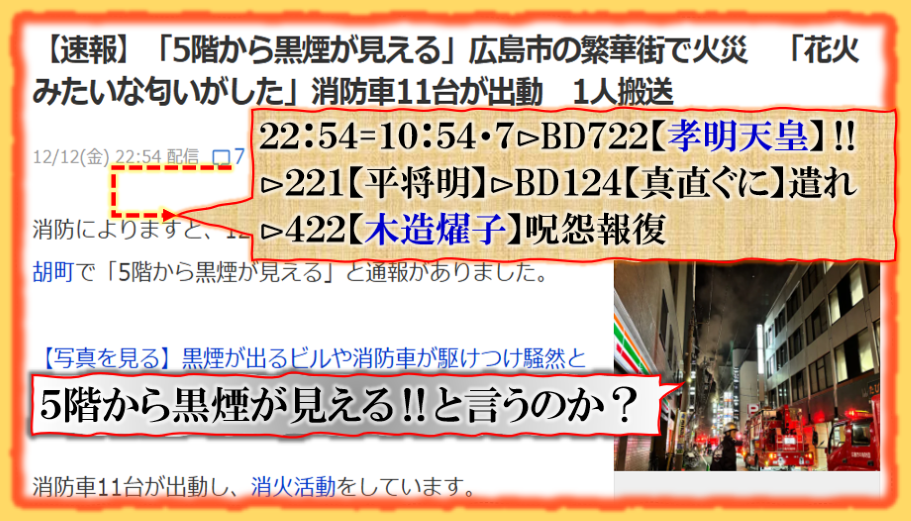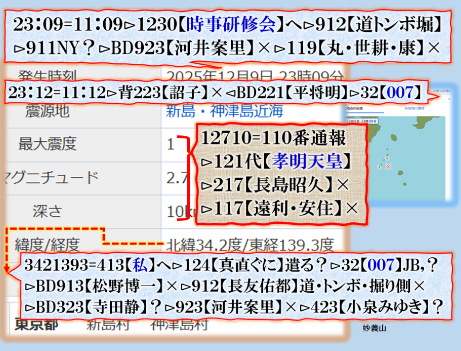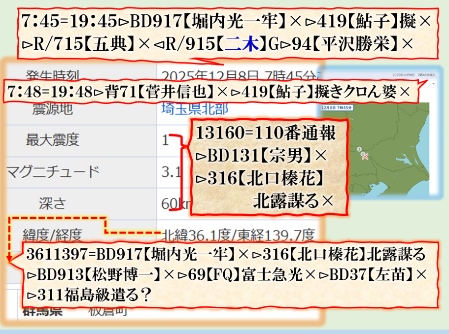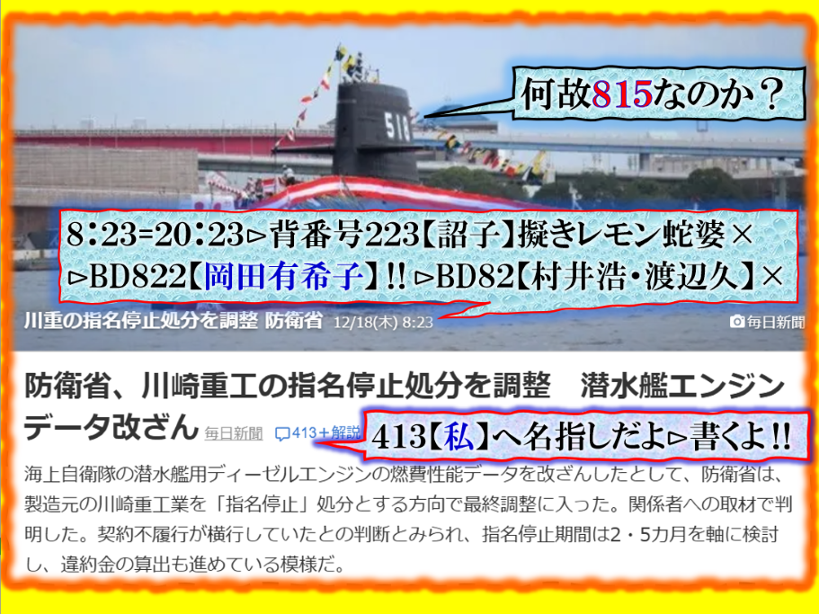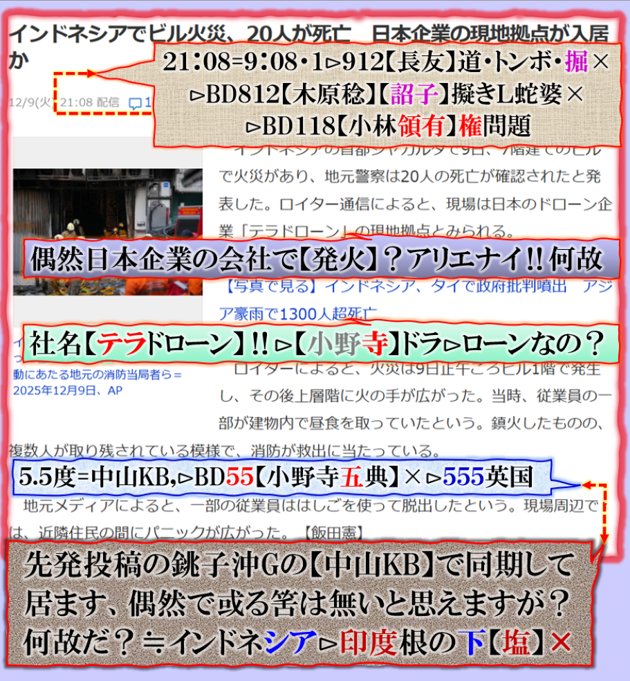 2件同日発生の目的は?⊳恐らくだが【広島文鳥】と【大分源田】&【八王子萩晃子】さんにベクトルが】効かせてありますよね❓私の見方ではそうなる訳です、普通の人には絶対にそうは見えませんが、是は間違いなさそうです、何れ身辺に何か起きる筈ですよ。其れだけでは無いと思います、その他は【暗号化】で更に深くメッセージが込められている様子です、その分野は皆様には絶対に読めません。 sy
