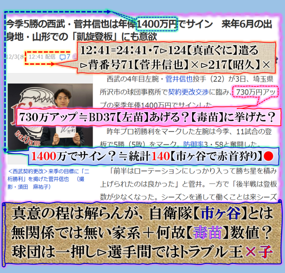 @1204⊳西武【菅井】の報道???不可解数値だ~~~♬