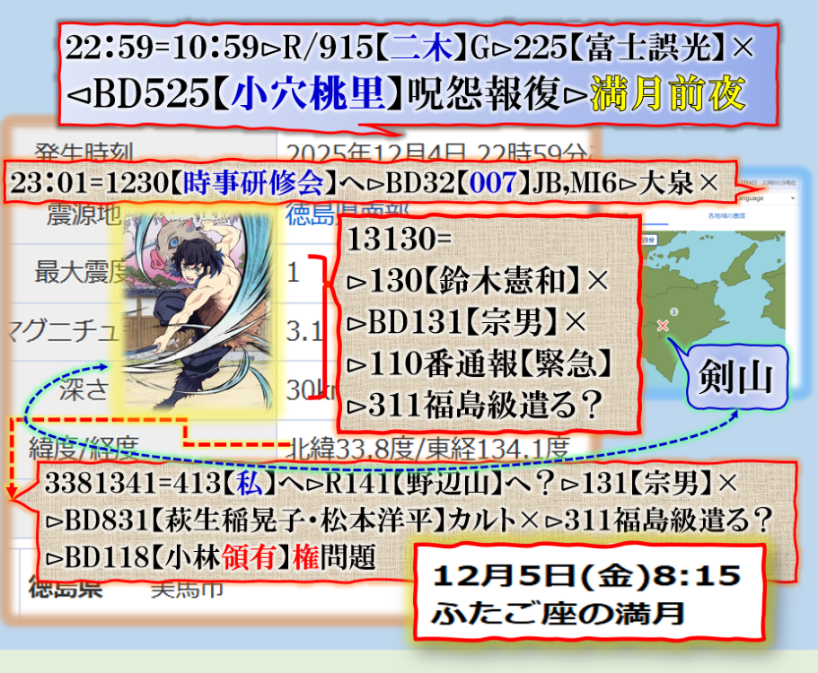 凄い事が起きそうですね❓彼方此方気に成る点がありますから、~~~♬・・・もう幾つ寝ると【午年】その前に【ニイタカヤマノボレ】シンジュワン【晋・寿一】⊳読売の【山口寿一】君侵攻されるのかな❓⊳満月時間は8:15=もう過ぎたのだが⊳BD815「岸田裕子・中村剛也」✖西武と岸田文鳥も危なそう❓?❓ sy