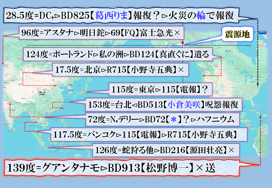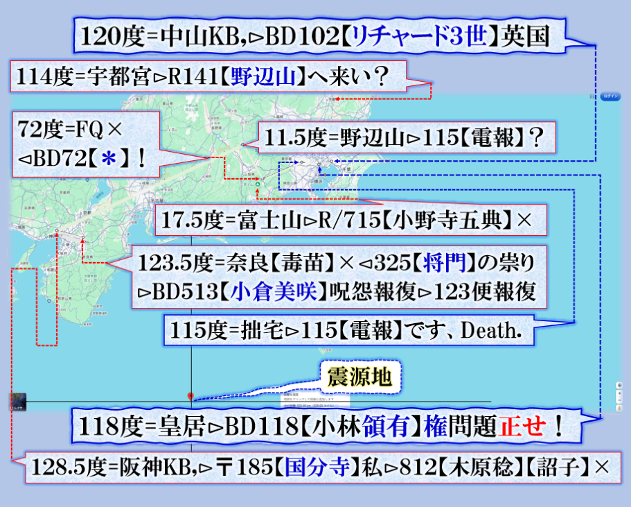 妙義山と日向山の【狼煙】の意味が同じだった【私】宛てでした、その意味は【青森沖G】の犯行声明でもあり、もしかすると次は【飛んで】日向灘へ撃ち込まれる可能性が出て来ました、青森から何故列島を【飛んで】日向灘へ❓其れこそ更に【恐怖】が増すからでしょう、御理解の通りに【地震兵器】で脅されて居る訳です、昔311福一Gの時の政権は【民主党】菅直人でした、今は【毒苗】です、自民党かも知れないが、実態は【カルト党】です、其処が大問題にされて居る様子です、遂に英国諜報部も乗り出して来た感があります、【リチャード3世】の数値で遣って来ました、【チリ】ゴミはヤードの中へ入れろ、3世【賛成】だと言う意味です、ゴミって誰❓【汚い首を持っている毒苗】の事❓五ミ=後と【巳】≒蛇歳婆と後藤君❓又は【五典君】の事も有りそうです、狙われて居る様子です。秋口に【英国空母打撃軍】が来日しました、横須賀⊳お台場にも❓英国情報部も動き出した様子が伺えるのです。其れを【私】に公開しなさいと言う意味なのかも知れない、任務と理解して公開して居ます。 sy