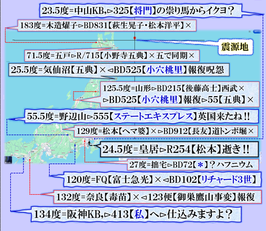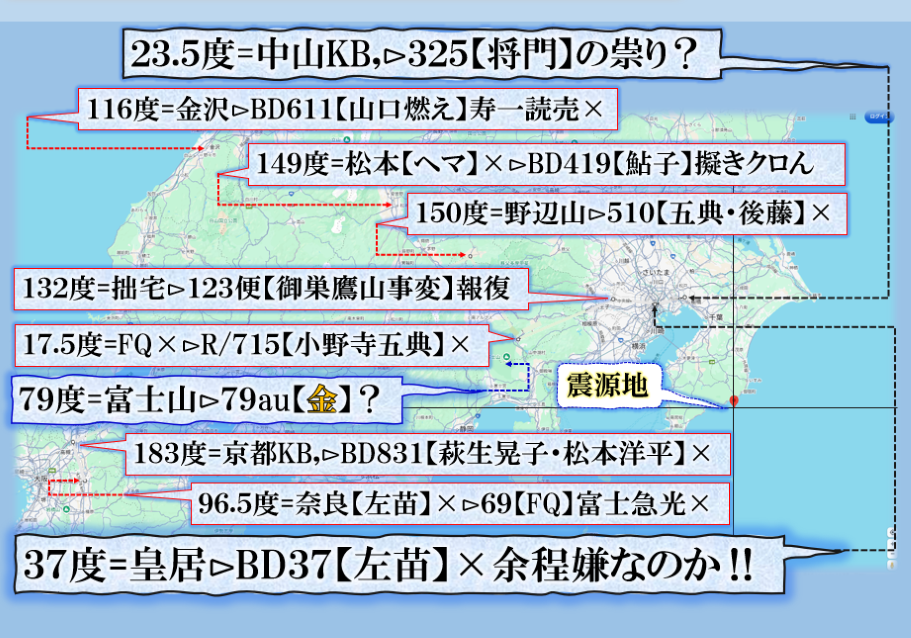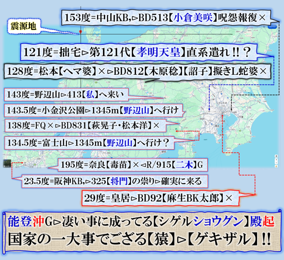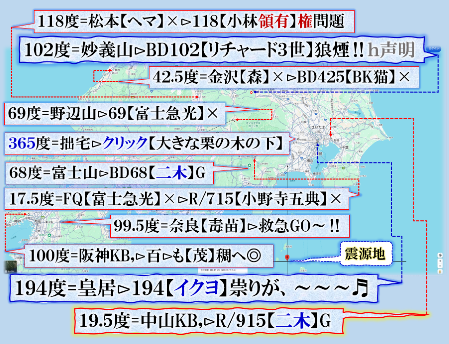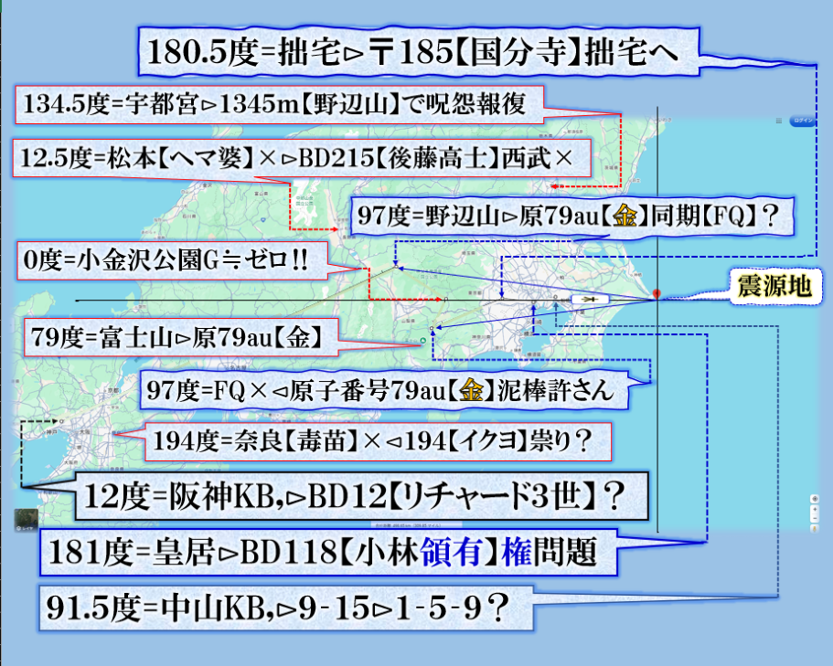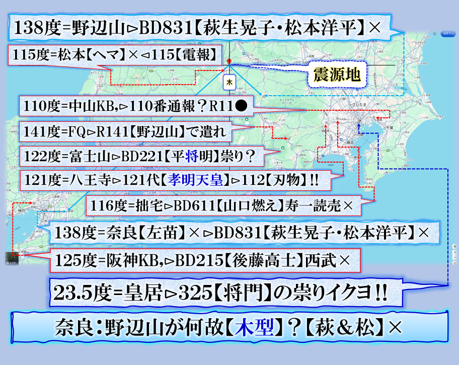 未だ良く見えては居ませんが、可能性として、明らかに【西武沿線】大泉学園付近が危なそうな気がします、【五稜郭】=【御陵】核なら【天皇家】の誰かが葬られると言う事かも知れません❓ sy