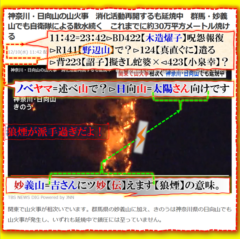 この時期に【狼煙】だから変なのです、発火原因が早々に出ている事が不自然です、【ふとんから火が出た】にゃんこスター報道と【歩】で同期して居る事が変です、確実にソレの事だと理解しました。 sy