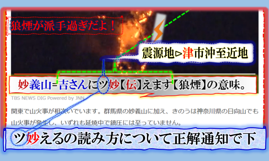 津市至近地海岸で地震=その意味は【妙義山】の読み替え方についての【正解通知】振動電報でありました、揺れは情報のやり取りに良く使われるのは常道です。その実態を公開して来た訳です。 sy