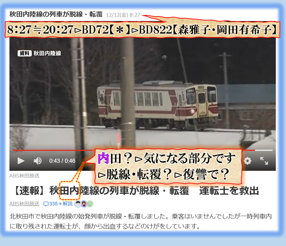 @1212⊳秋田内陸線が脱線転覆❓