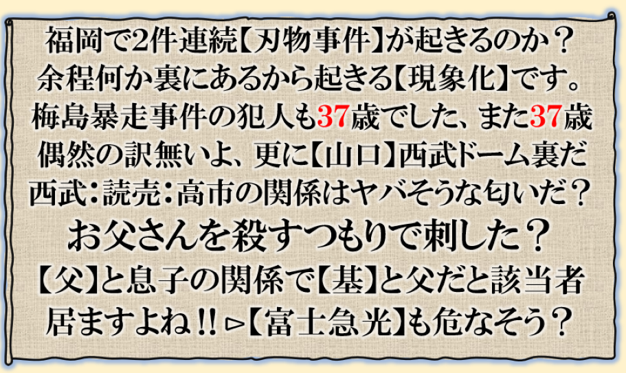 @1211⊳不可解な刃物事件は西武絡みだろう???