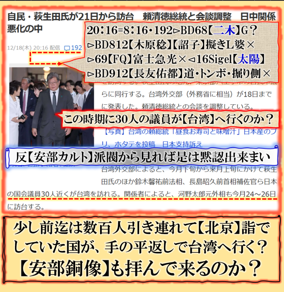 日本国民は【毒苗】政権も【コイツラ】も認めて居るのか❓【高支持率】で本当に支持して居るのか❓裏金まみれの奴等を自由に動かして【台湾支持】なのか❓この動きは間違いなく、良いメッセージにはなりません、更に火に油を注ぐ動きだろう、本当に是でいいのか?何しに【台湾】へ行くのか❓【裏金】のキックバックを【現生】で受け取りにでも行くのか❓国会が終われば議員も自由意志で何処へでも出かけられる❓海外視察費で経費で行く訳では無いだろうが議員の立場で考えれば、今そこへ行くべきでは無いだろうと私は思います。 sy