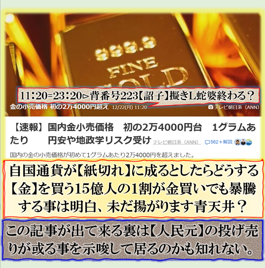 @1222⊳このタイミングで金価格急騰???ヤバそうだな❓