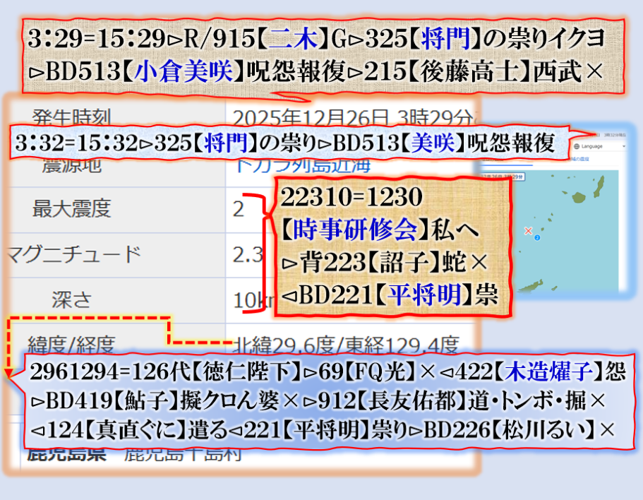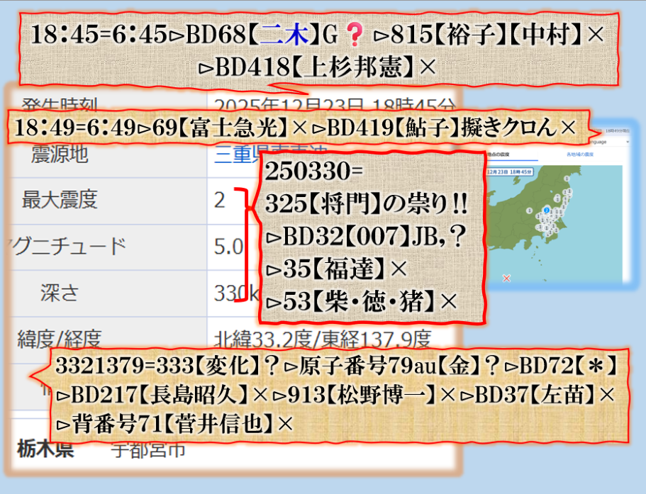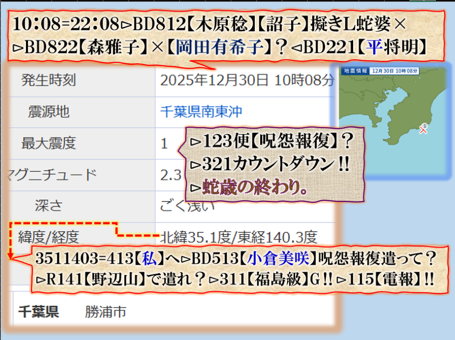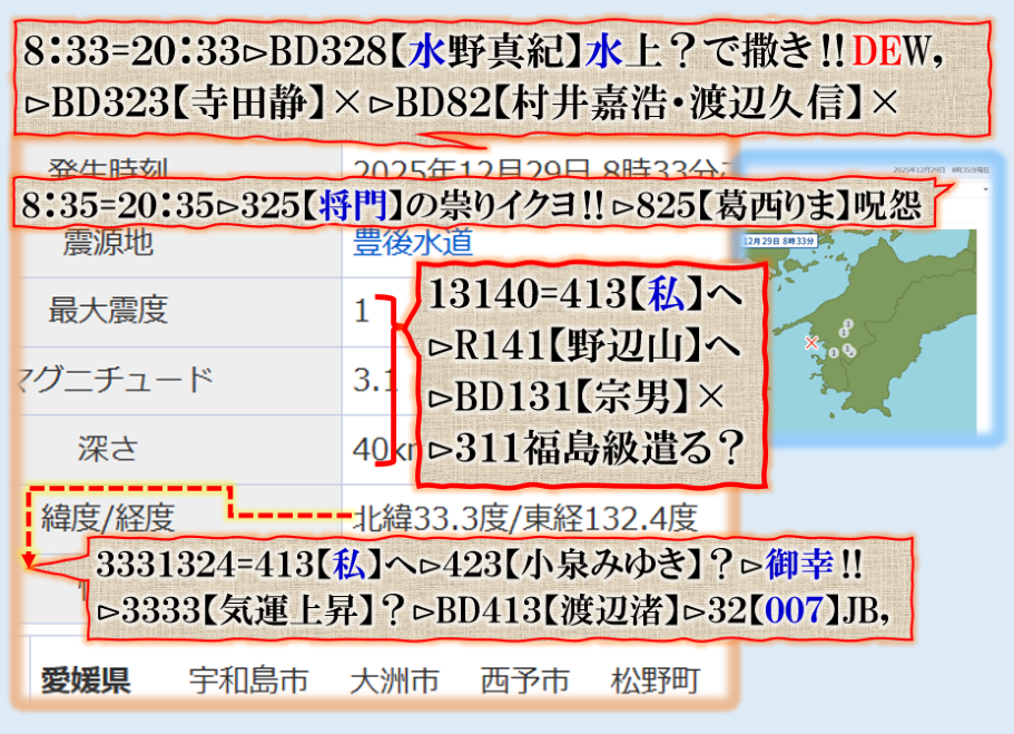 コメントはしませんが、此処で【311級】遣ったらどうなるかを考えろ、今のままなら必ず来るよ【祟り】のズド~~~ン東海地方は終わるよねどうするの❓早く何とかしないと、是は警告の【プレアドバイス】です。解って居るよね。 sy