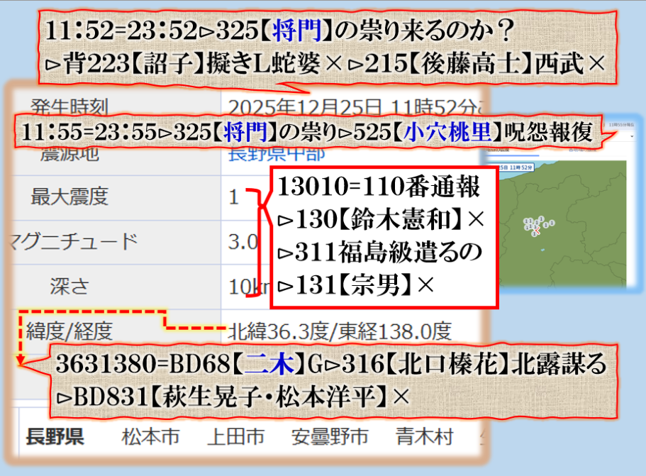 黒木(37)が非常に気に成ります、出身地が【諏訪市】是は地震の意味を表しますから、各実に来そうです、この人裏・闇が深そう。 sy