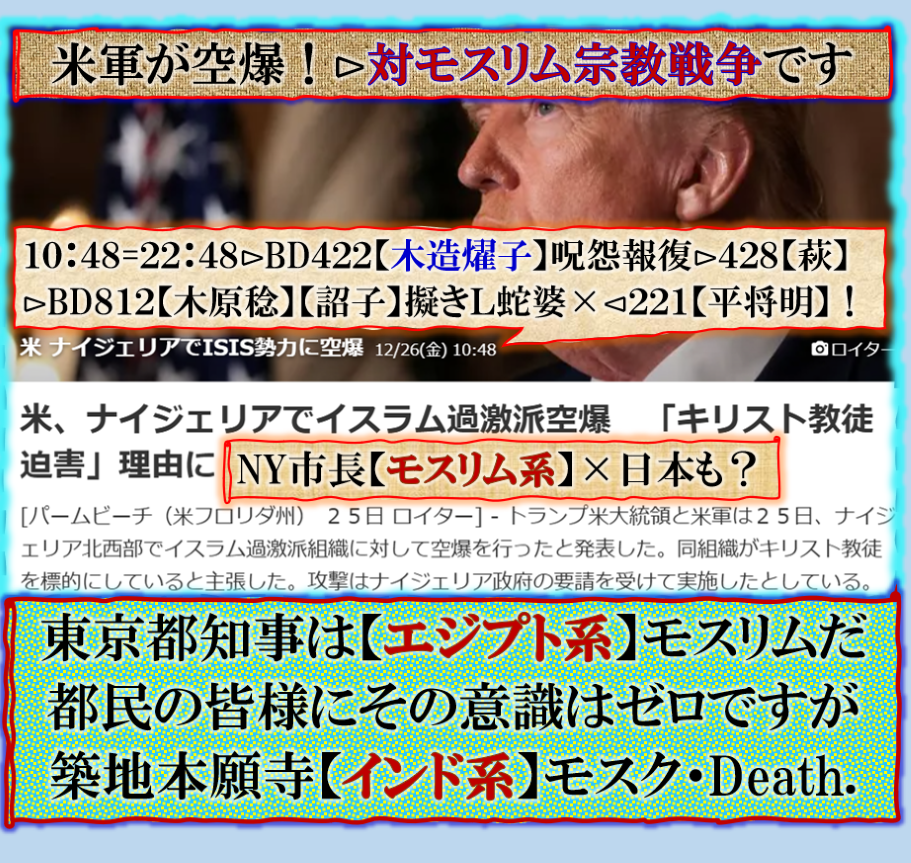 意味無く米軍は空爆をしない、深い意味があるからやる、ベネズエラ問題を如何する気なのか❓その前にナイジェリアへ遣った訳です。我が国がどの様な立場に追い込まれて居るのかは一般人には見えないが実は【モスリム国家】だと言ったら言い過ぎだが、間違いでは無いのです、だからこの闘いは止められません。 sy