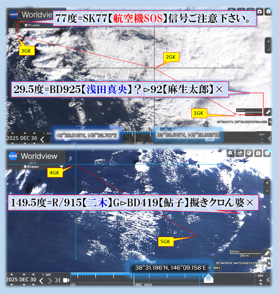 今日は【ニイタカヤマノボレ】怖いことが起きそうな予感も有ります、~~~♬【悪党共】には常にその報いとして何かが見舞われる定めが或るのです、飛行機に注意信号が出て居ます、やたらと5555~~~♬が出て来ますから【地震】も有りそうです、ご注意下さい。 sy