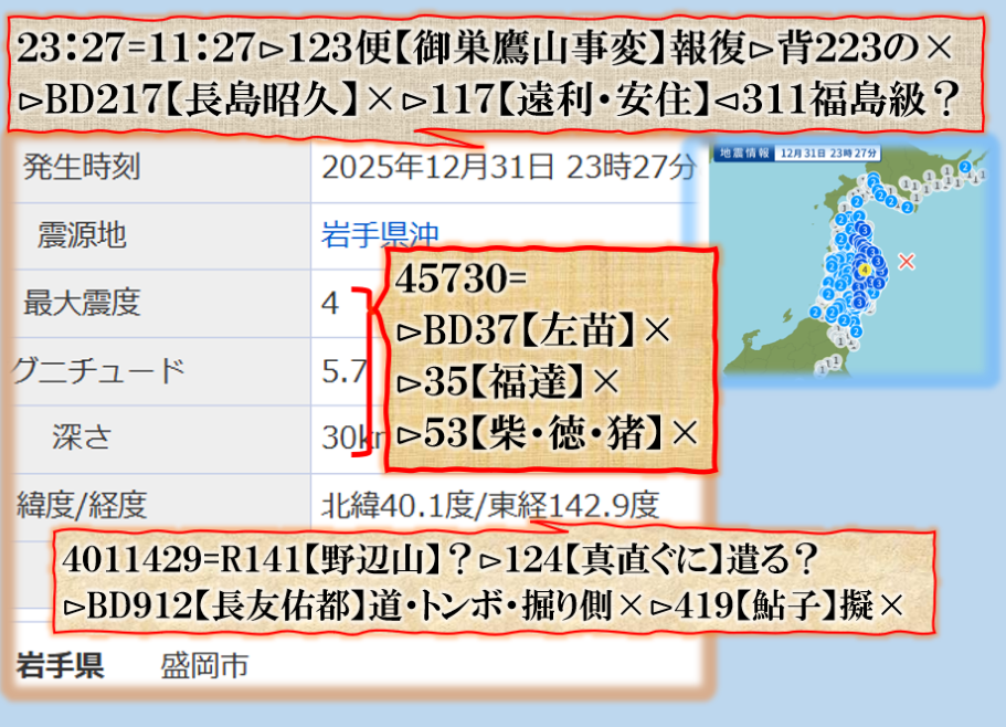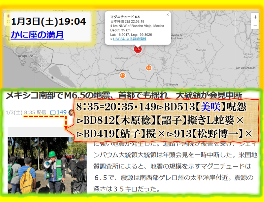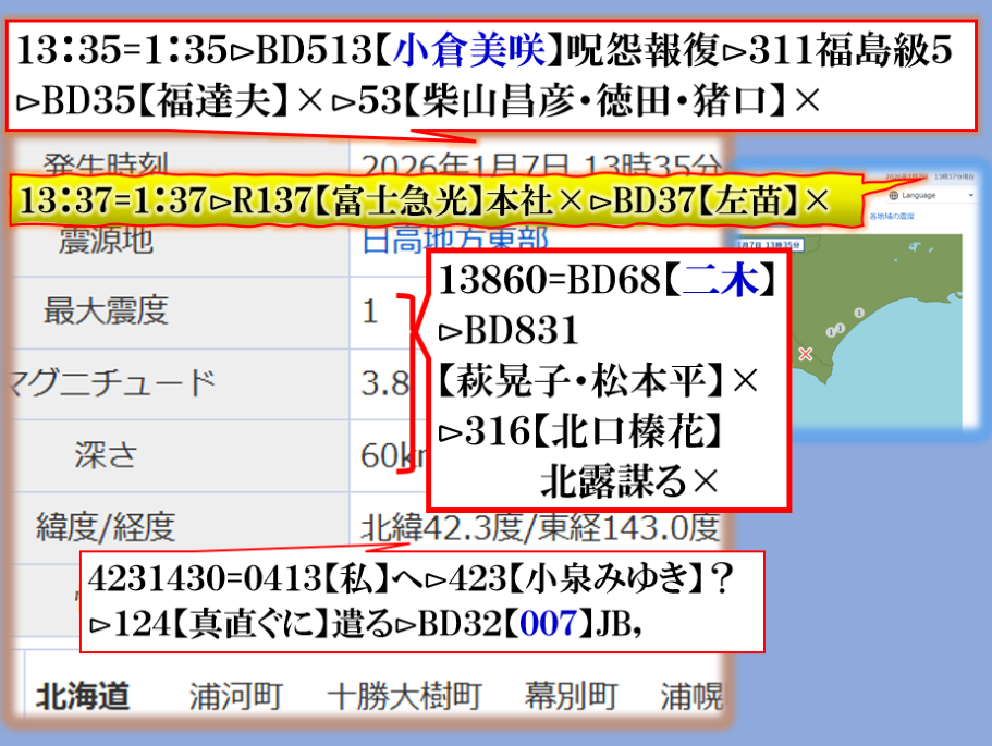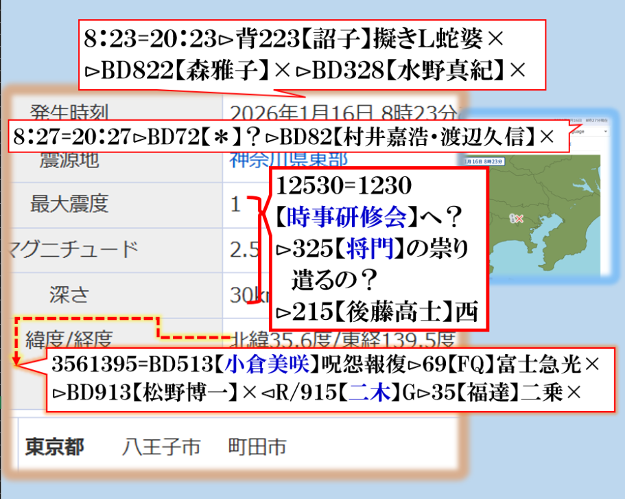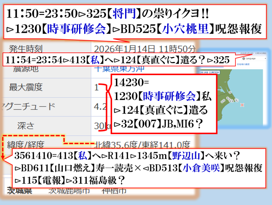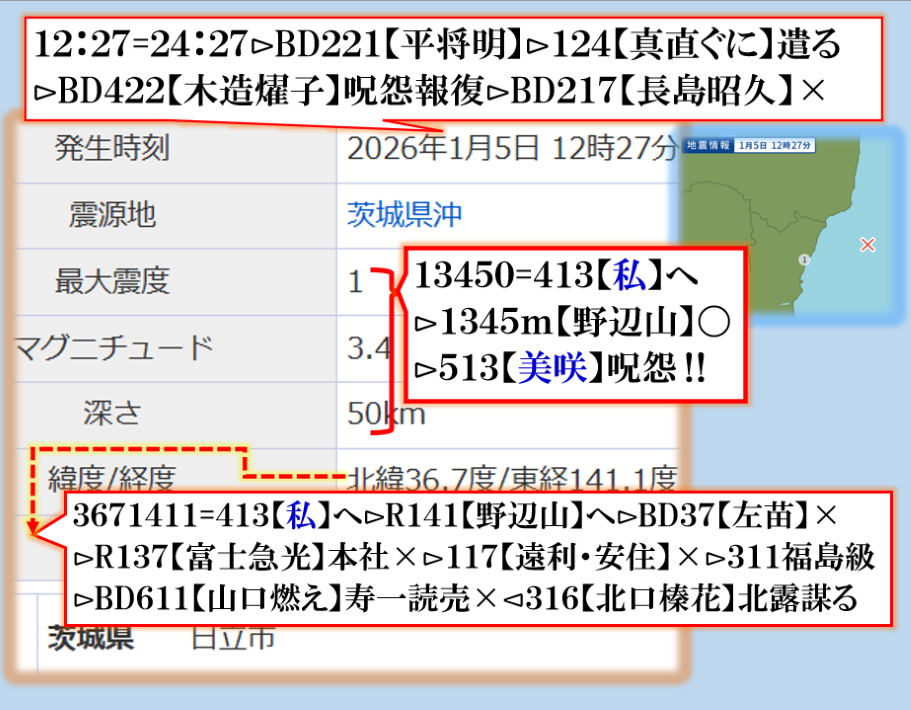 【美咲】さんの数値がやたら出て来る【怨念】を強く感じる新年早々に不穏な物を感じます、それだけでは無い、皇居にも【浅田真央】の数値ですから、~~~♬ sy