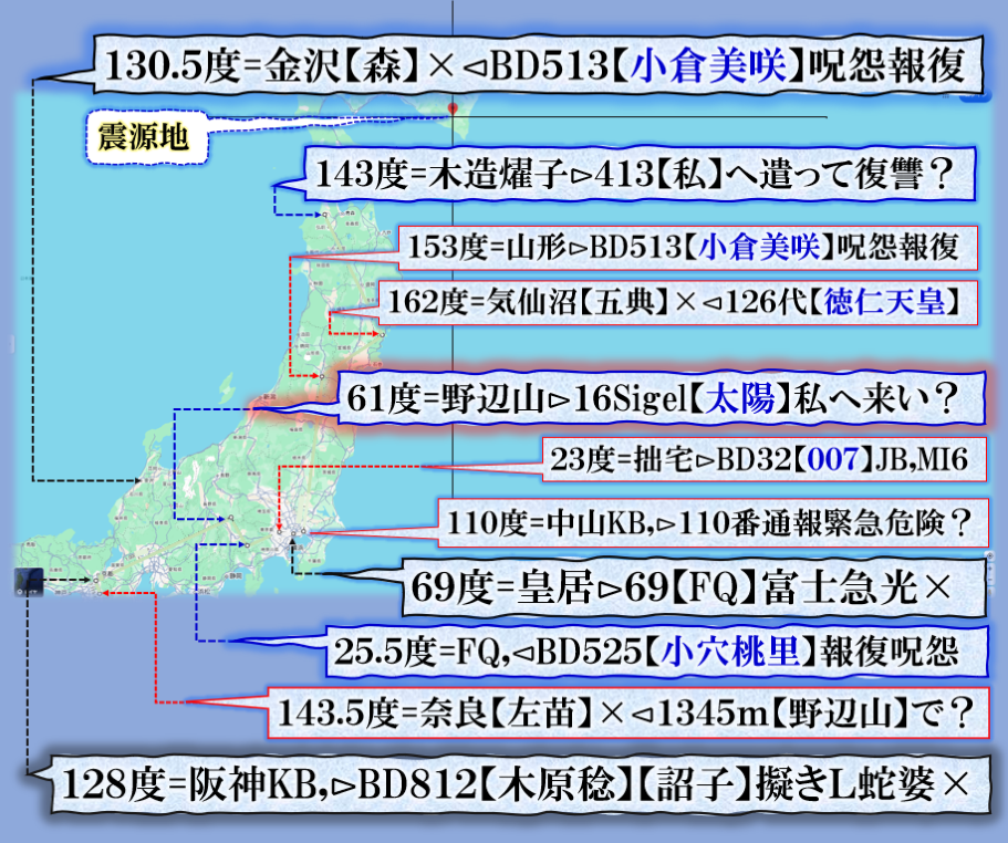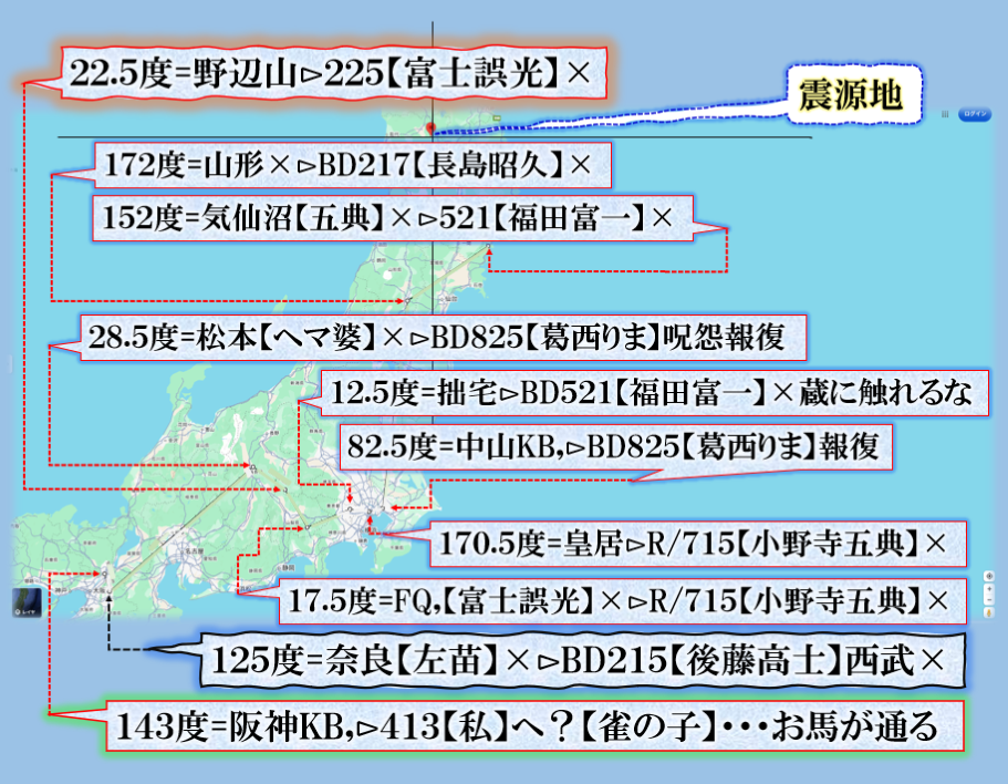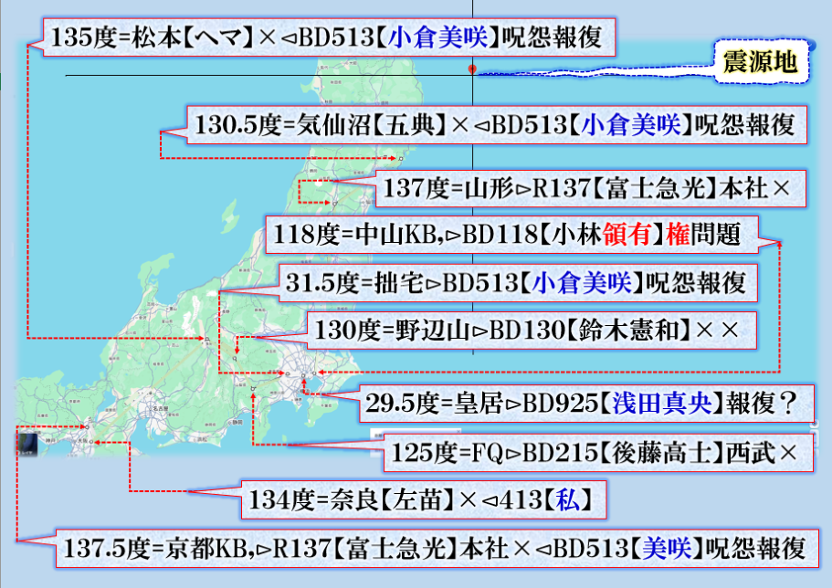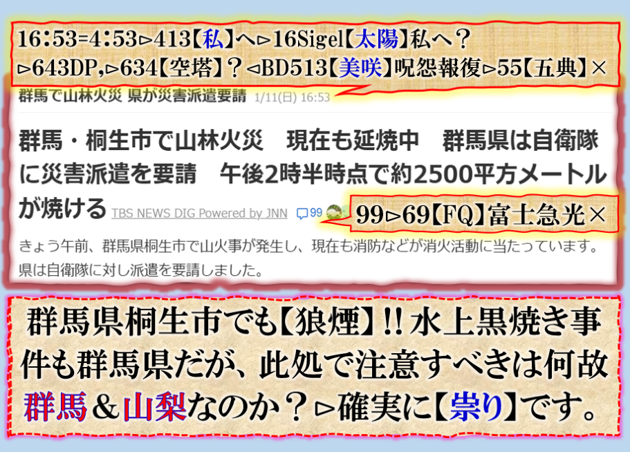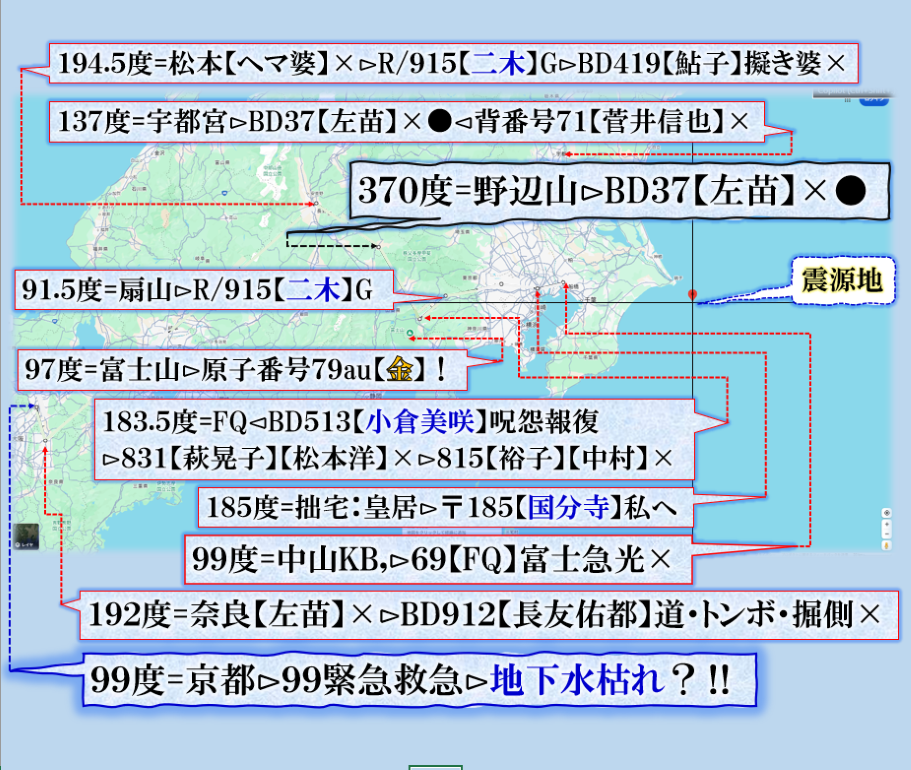つまり、埼玉・群馬・山梨に目掛けて【祟り】が見舞われて居る事に成る訳です、其の構図こそわかりやすい【現象化】だと私は読みます。【閻魔大王】の火炙りの【祟り】埼玉は【河川敷】らしい、【禍戦磁気】DEW,を匂わせる意味にもつながるから不思議だ、偶然か❓ sy